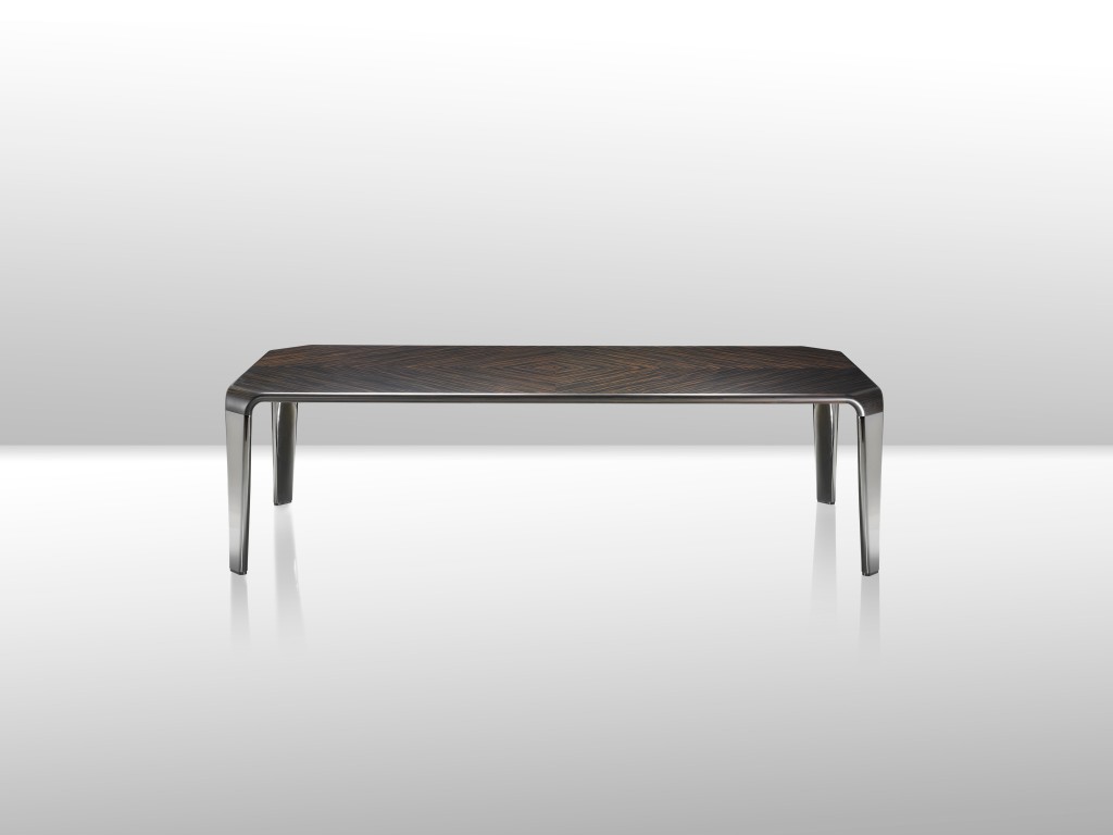 Le métal est le signe distinctif du créateur . Ajouté à la table Star, il en souligne le design aérodynamique.