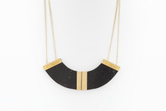 La nouvelle collection crée une association de matières subtiles et inattendues. Elle comporte des bijoux en marbre, métal et céramique sur des colliers, plastrons, pendentifs, bracelets, boucles d’oreilles,ou broches.