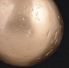 En version brossée, la boule Gaïa, matrice féconde, parait irriguée de vaisseaux, comme un champ fertile offert à la lumière du Soleil.