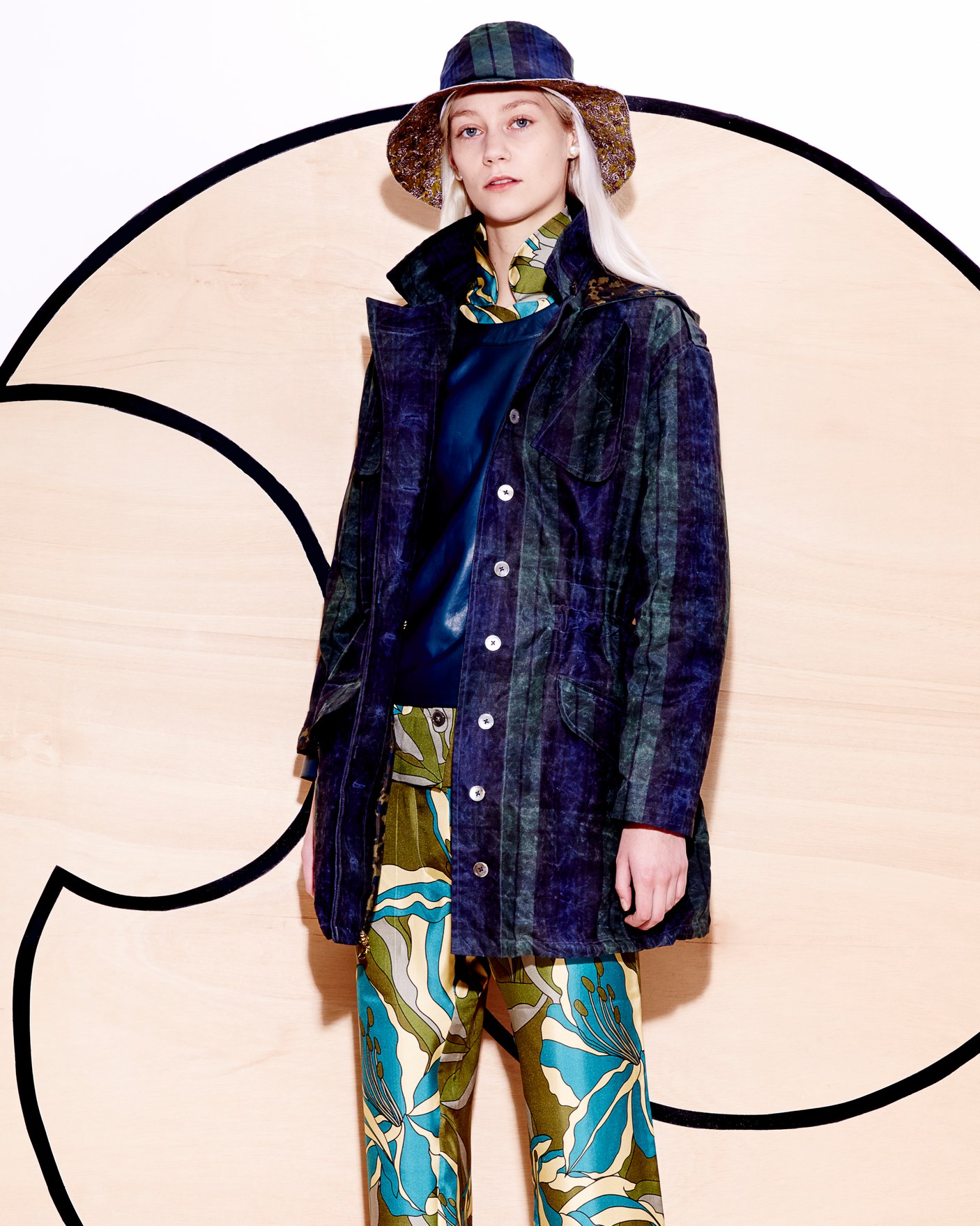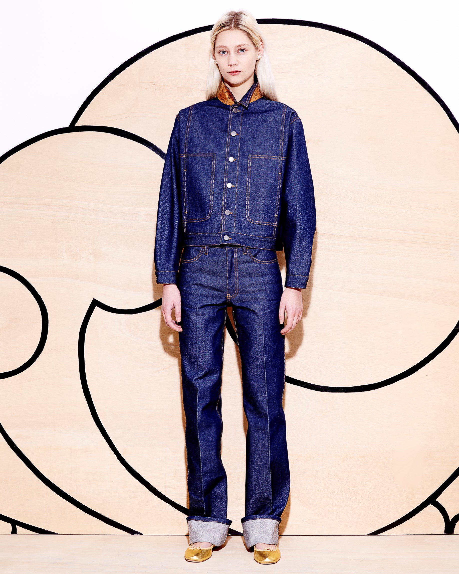 Les blouses de soie aux couleurs flamboyantes côtoient les jupes et pantalons taille haute. Pull et body en jersey de soie se portent avec de larges cols roulés amovibles et se rehaussent de pièces en agneau plongé dans des tonalités de bleu vert paon et rouge éclatants.