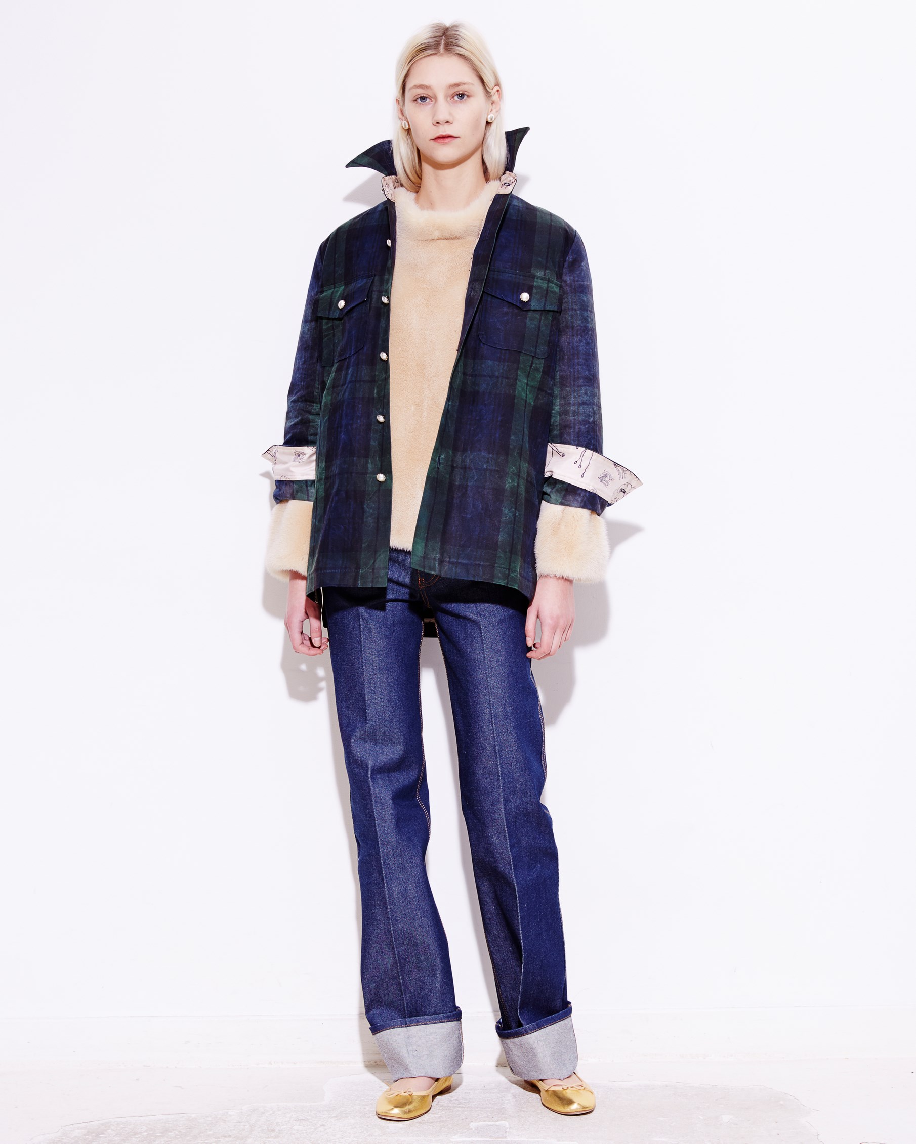 La silhouette est celle de la parisienne chic des années 70, entre raffinement et blondeur bourgeoise. Les dessins exclusifs signés Laurence Kiberlain et Jacques Darnel rendent hommage à cette parisienne sophistiquée et moderne. Le fourreur de renom Sprung réalise pour La Prestic Ouiston une surchemise en vison, entièrement doublée de soie dans les tissus exclusifs de la marque.