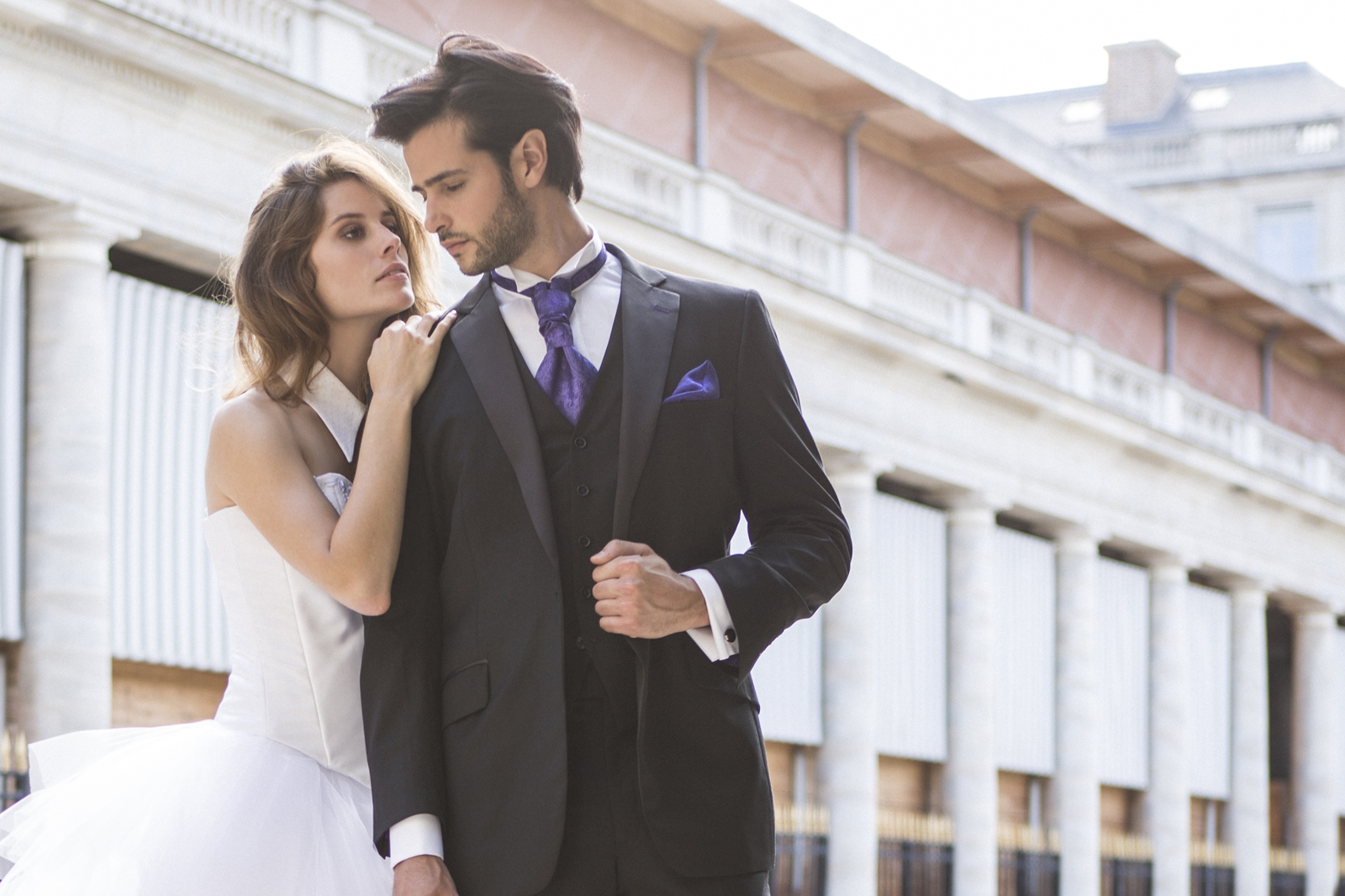 Pour notre part nous avons choisi un costume gris et une doublure violette. Nous avons poussé la customisation à fond.