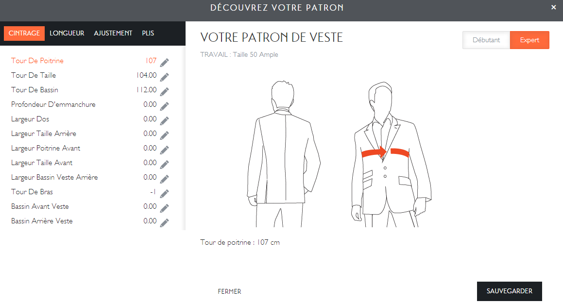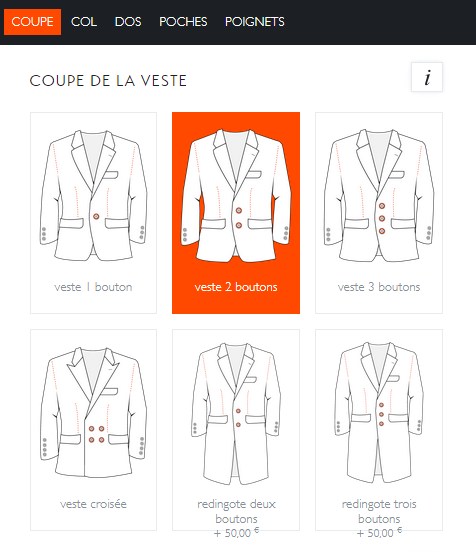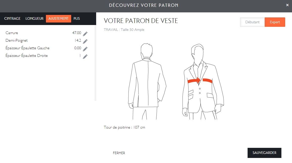 On peut alors tout customiser et préciser pour que le costume et la veste tombent parfaitement bien. Vous verrez grâce à ces visuels jusqu’où dans la precision on peut aller.