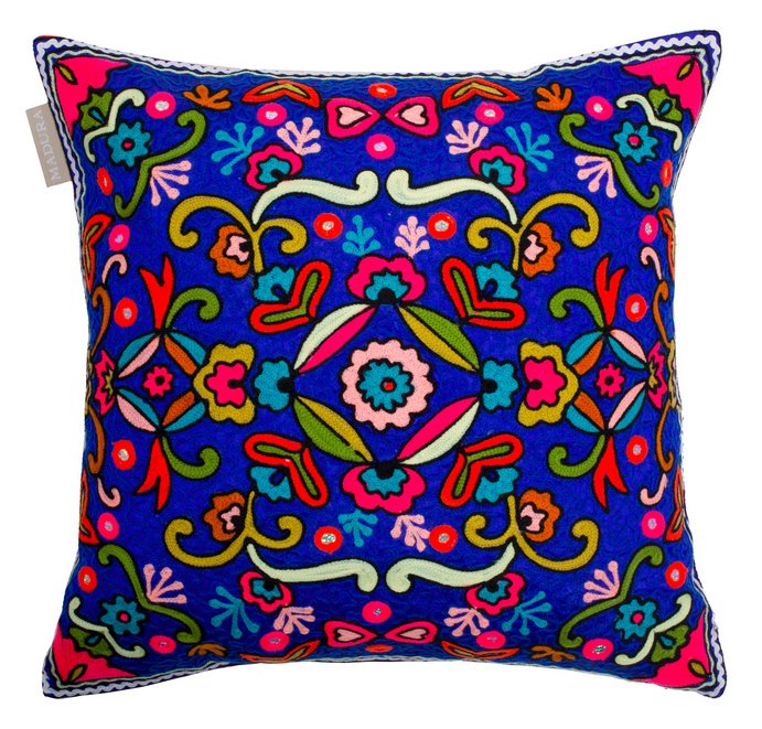 De l’esprit Maya au folklore indien en passant par l’engouement slave du moment, la collection de coussins Madura est variée dans ses modèles et pleine de vitalité dans ses choix de couleurs, sans pour autant basculer dans le kitch. Ainsi, un modèle floral comme l’Anoushka par exemple se fondera dans un intérieure de style nordique, alors que le tissue au symétrisme aztèque de l’Ayahuasca mettra en valeur un extérieur californien, les fresques arabesque bleutés qui figurent sur l’Izmir, elles, trouveront place plutôt sur le patio épurée d’un Riad à Marrakech. Dans l ‘ensemble la collection s’exprime à travers le renouveau d’une bohème aux tournures élégantes et se fondera dans n’importe quel intérieure en s’accordant avec votre envie du moment.