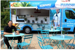Un camion ambulant, bleu turquoise comme celui des lagons polynésiens, à bord duquel il met ses talents de chef à profit de ses clients avec lesquels il est en contact direct, un aspect primordial pour Teheiura.