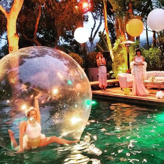 Johnny Hallyday a célébré dimanche dernier ses 72 ans à Venice Beach, Los Angeles. A cette occasion son épouse, Laetitia Halliday a enfilé une perruque noir émulant le carré lisse de Louise Brooks, et a orchestré une soirée exceptionnelle sur le thème du roman de Francis Scott Fitzgerald, « Gatsby Le Magnifique ». Plumes, paillettes, champagnes, ballet aquatiques, et assiettes art déco se sont entremêlés le temps d’une soirée inondée de l’enchantement des années folles.