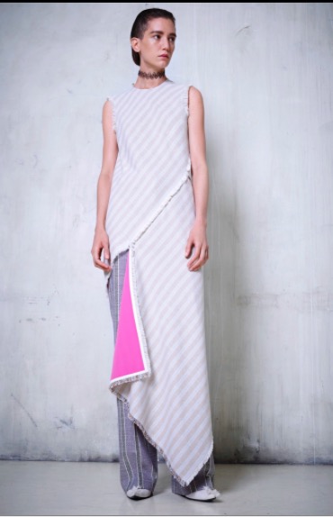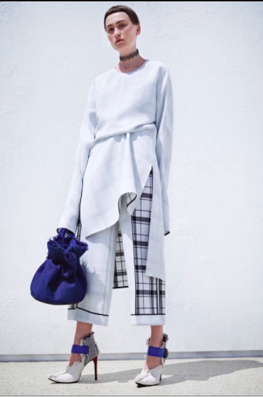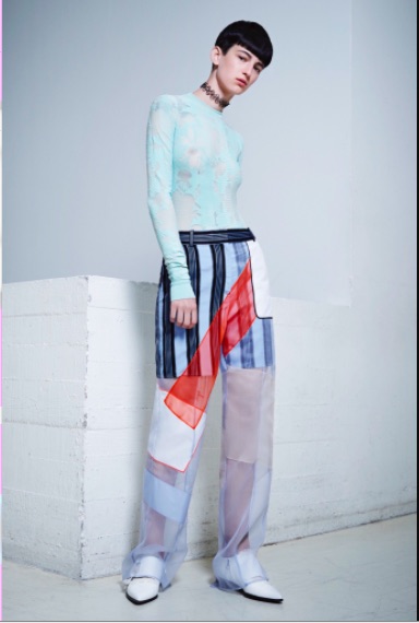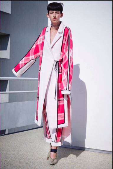 La collection Acne Studios resort 2016 amarre sur les rives épurées et électriques d’une collection resort lumineuse. Les nuances forment un patchwork de couleurs qui matche. Carreaux et rayures diagonales sont raisonnés et mariées aux couleurs unifiées. La géométrie des modèles remémore l’esthétisme pictural d’Albert Gleize. Aspergée d’une touche Mario Schifano, la collection resort 2016 a une dimension artistique singulière. Les motifs sont soigneusement imbriqués dans des coloris intenses. Indigo, crème, rose chatoyant et rouge sont sur le podium Acne Studios. Dans ce dédale de motifs, de matières et de nuances , Acne Studios nous montre le chemin. Le résultat final est surprenant. L’organza de soie rencontre le daim, le lin et le tissu croisé de soie. Cette virtuosité artistique est convaincante car elle crée un minimalisme sophistiqué.