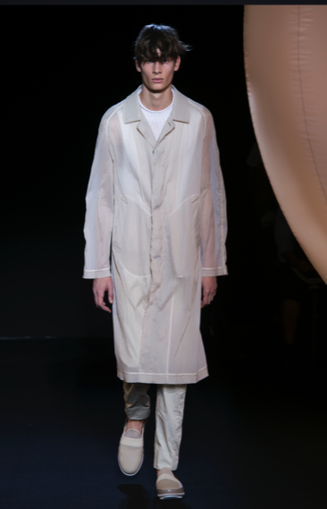 Les créations Wooyoungmi de cette prochaine saison seront lunaires, assemblé de façon minimaliste à partir de matières souples et étanches aux allures feutrées luisantes. Des détails sportifs viendront rehausser la sobriété minimaliste : beaucoup de fermetures éclairs, des jeux de transparences, des bandes asymétriques, des cravates complètement réinventées, des ceintures insolites, ou encore des vestons semblables à des gilets par balles.