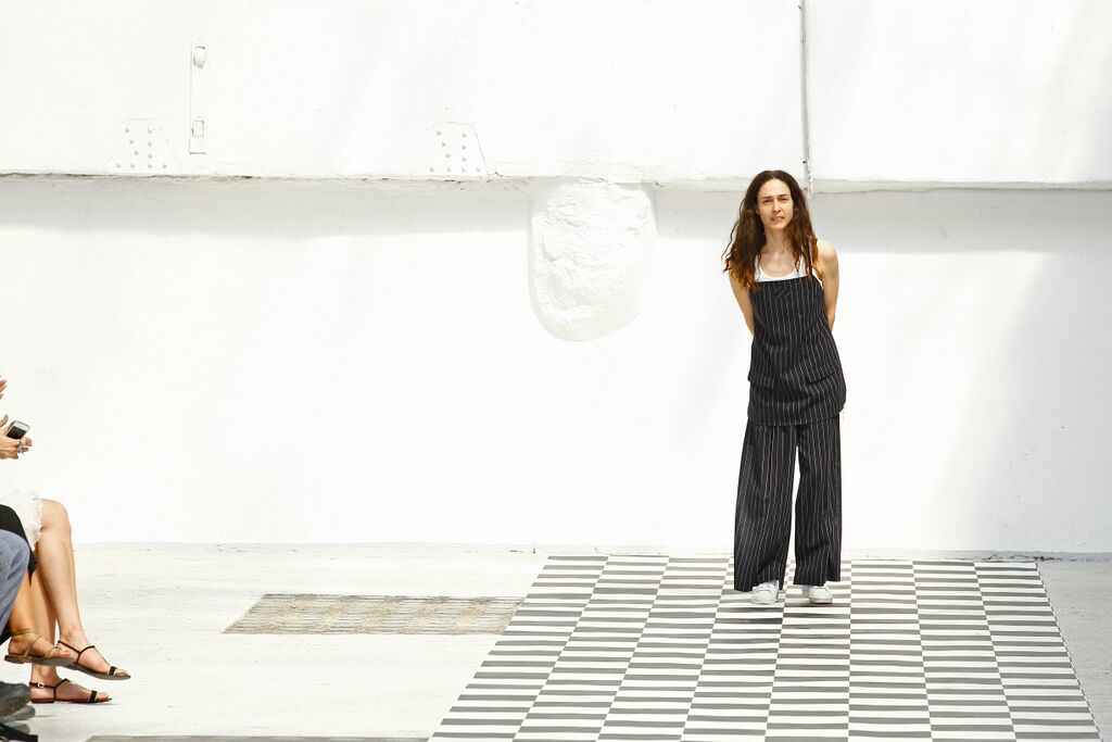 Les coupes sont faites dans un objectif d’équilibre entre le long et le court : la recherche d’un fil dans cet univers fantastique voir surréaliste. Car c’est bien là une autre des inspirations citées par la créatrice Stéphanie Hahn : Dada ou le sculpteur Hans Arp. Comme une remise en cause de la classique robe noire, ou des costumes d’hommes d’affaires, le coupes et les boucles d’oreilles en perle viennent faire réfléchir sur les fondements du chic bourgeois.