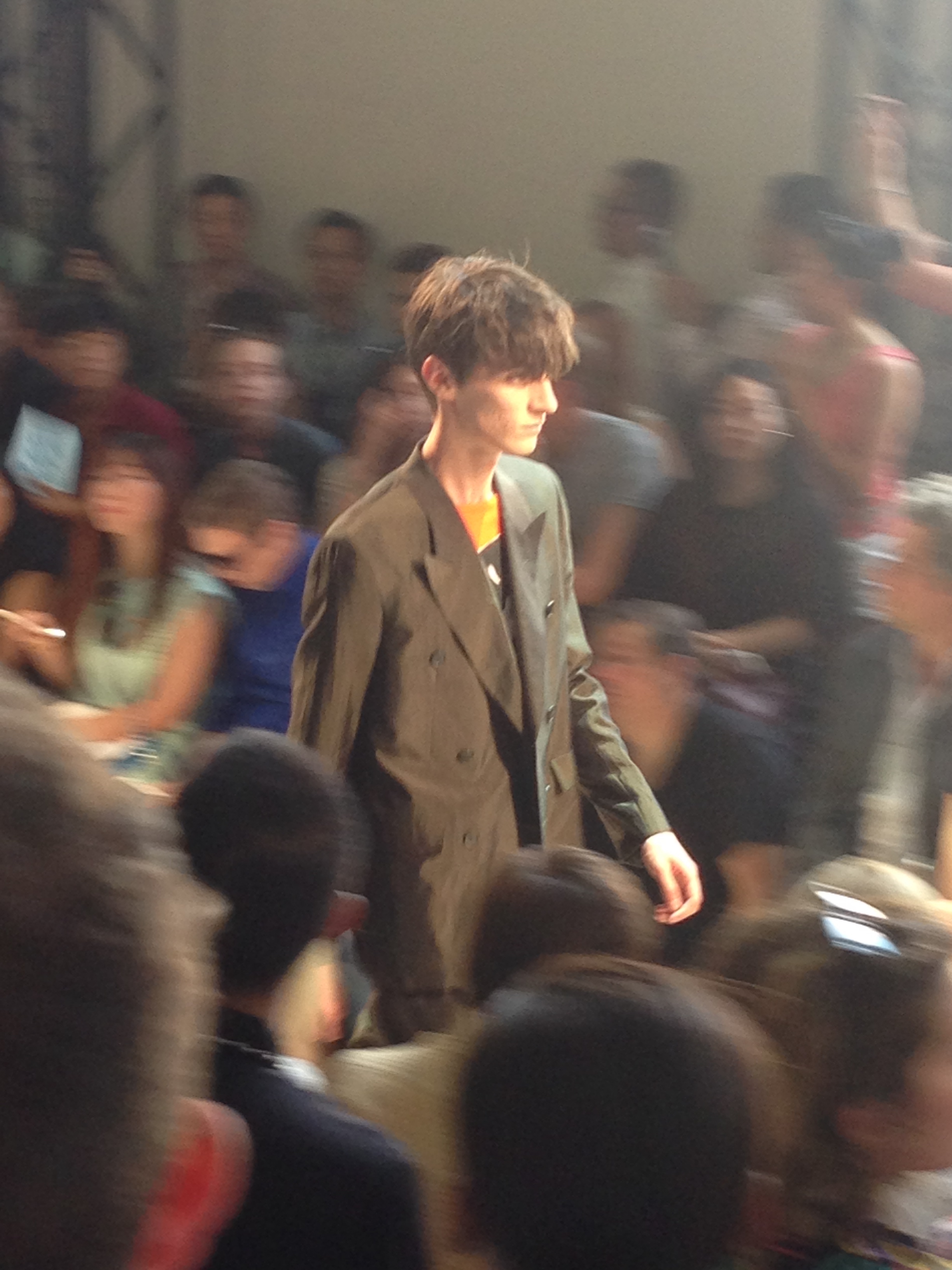 « Independent Mind » chez Paul Smith qui joue avec les couleurs, les proportions, les imprimés toujours avec humour et joie. Paul Smith nous parle d’indépendance d’esprit tout ça sur un air de rock ! Il ose l’orange ou le blazer vert coordonné à un pantalon jaune, et avoue en backstage être très inspiré par David Hockney, un ami et client. Il est question de proportions avec du slim tendance rock’n’roll ou des volumes avec vestes & pantalons amples très eighties. Il y ajoute un côté disco seventies avec tonalités cuivrées et bien sûr de l’humour avec imprimés de lapins et fourmis, exemple pour Paul Smith d’une vie en communauté réussie …