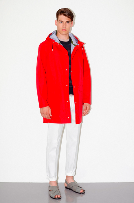 Le voyage a donc commencé avec les blousons bicolores double face à porter tout au long de la journée. Conçu pour faire face à des pluies d’été soudaines, le manteaux waxé devient un vêtement emblématique de la saison. En nylon ultra-léger à l’extérieur et en fils de coton teints à l’intérieur, de petits détails techniques viennent le rendre encore plus confortable. La taille élastique facilite les mouvements, les poches zippées sont une pratique et le double bouton nage rend la veste entièrement réversible, de vert cactus au jaune pavot ou de rouille à orange sunset. Proportions surdimensionnées, poches plaquées et perforations, il adapté au visage par des cordons cachés, des fermoirs, et des Velcro qui entourent les poignets.