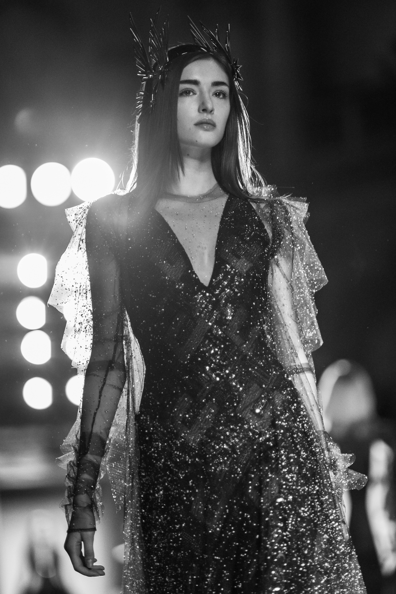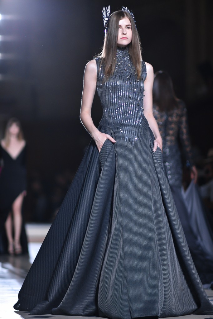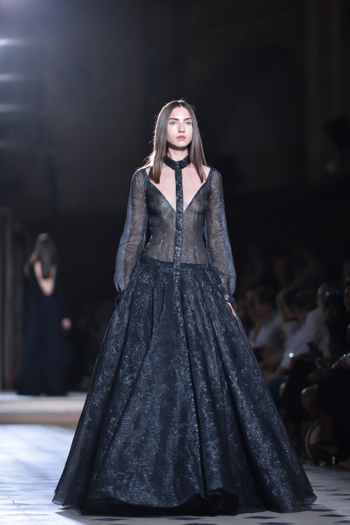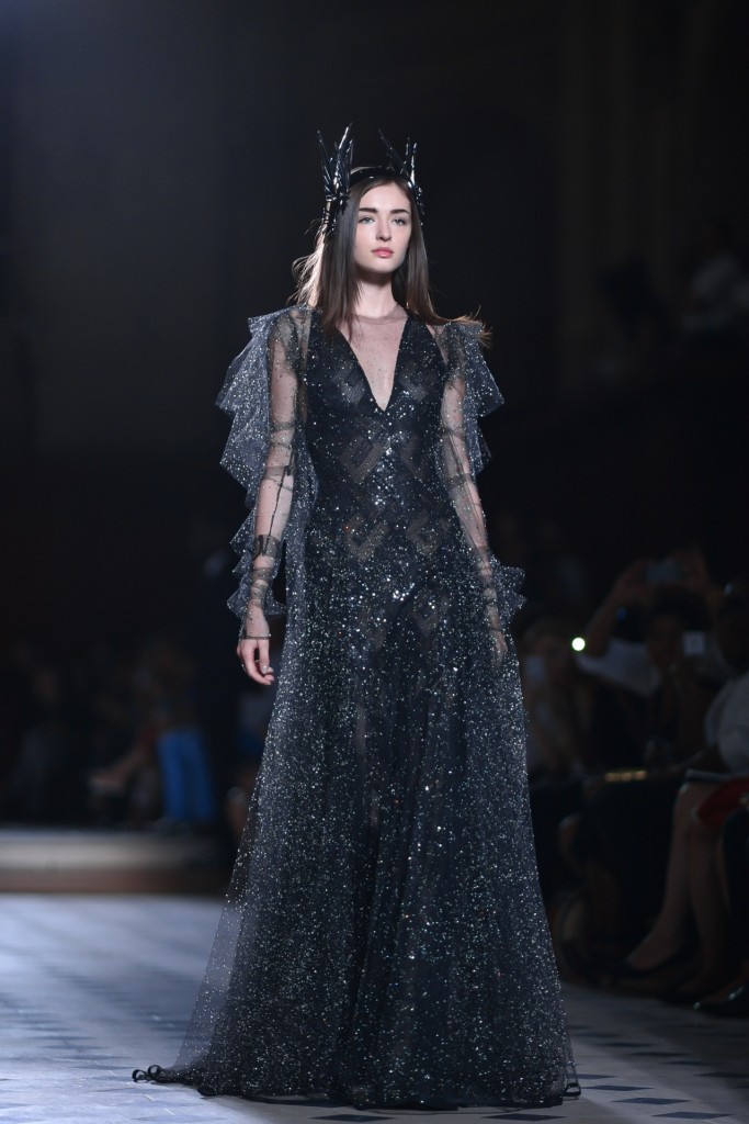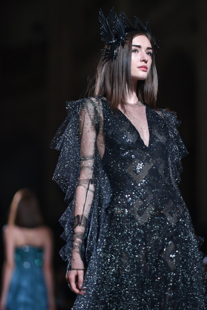 Intitulée « première nuit », cette collection est saisissante. La féerie est élevée à un niveau d’enchantement tel que l’enthousiasme de l’auditoire raisonne à chaque passage de ces architectures. Le créateur fait défiler des elfes qui chacunes détiennent des pouvoirs avec lesquels il n’est guère conseillé de s’amuser. L’impulsion de la lune éblouit le catwalk. C’est une féminité exacerbée par son pouvoir et saisit par le magicien.