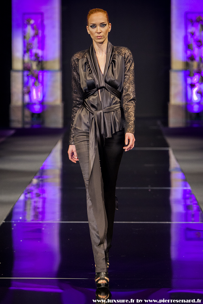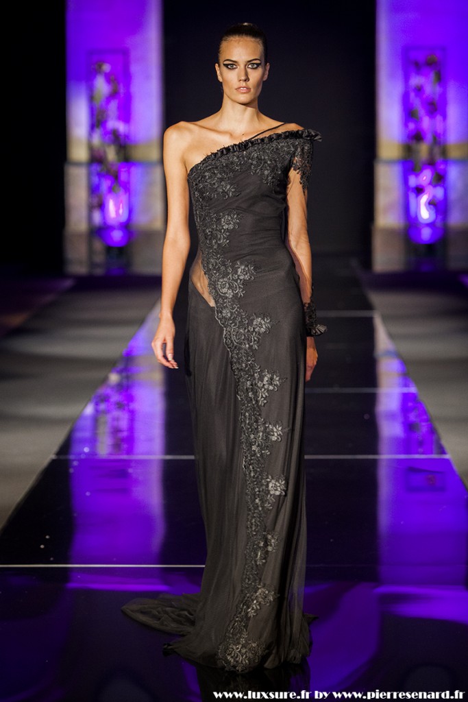 Sculptée dans des corsets rigides, et reflétant les lumières de la nuit, la femme Zvonko Markovic à la taille marquée et les épaules soulignées: une carrure traduisant sa force, tout en restant très féminine grâce aux dentelles finement découpées, laissant entrevoir des dos nus surmontés de longues traînes.