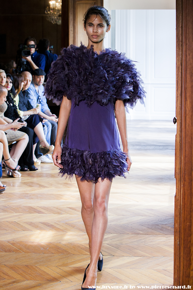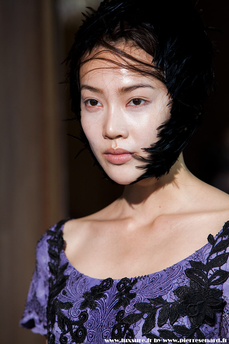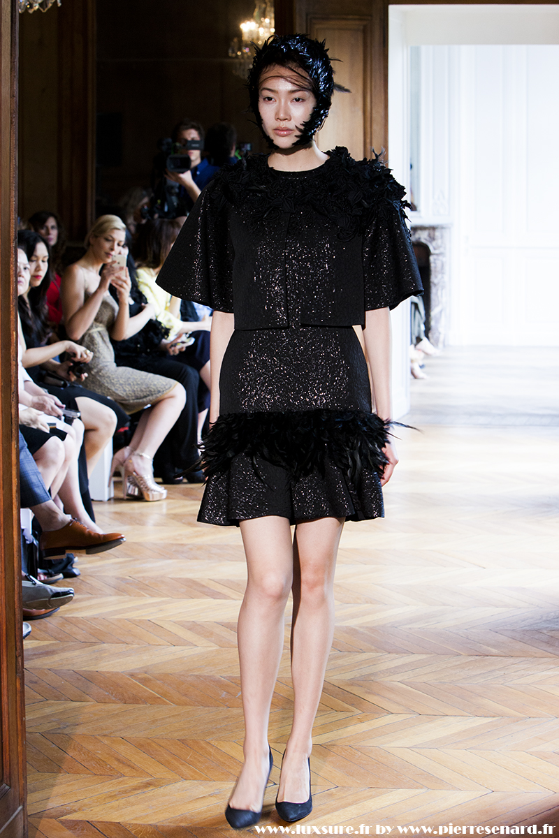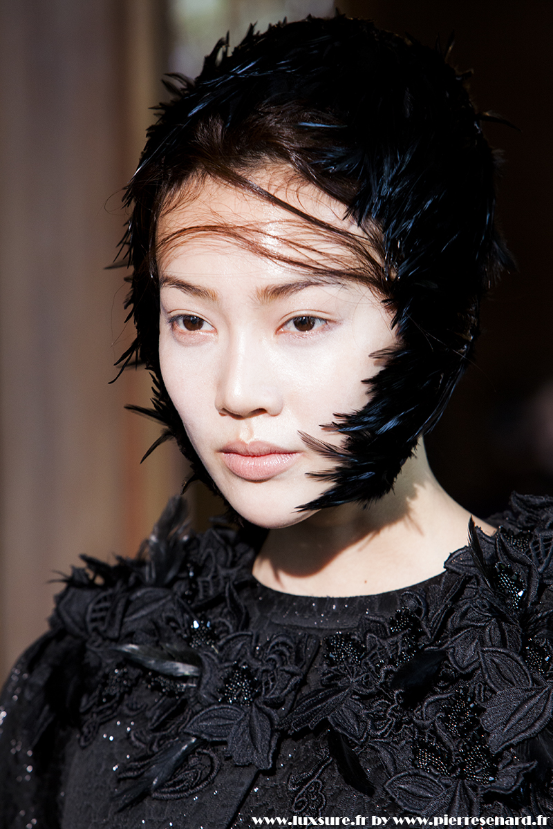 Des plumes , des coupes courtes et évasés, des tissus finement brodés : du classique sans prétention. Un classique efficace qui nous fait voyager dans un temps ou la délicatesse d’un Black Swann rencontre la grâce d’une héroïne Hitchkockienne.