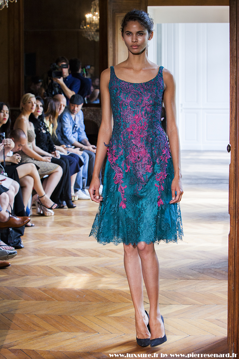 Les modèles courts, surmonté de boléro, permettent de souligner la taille, le tout dans des modèles qui révèlent un travail sur de matière comme le satin, l’organza, la guipure, ou la dentelle de chantilly . Les broderies de tulle des longues robes sont dignes de la haute couture. La collection décline deux principaux modèles dans des tons unis qui s’étendent du noir au turquoise, en passant par de nuances de violets qui filent jusqu’au rose pâle. Parfois des couleurs se rencontrent comme le turquoise et le violet royal pour les meilleurs effets, modernisant le classique des coupes.