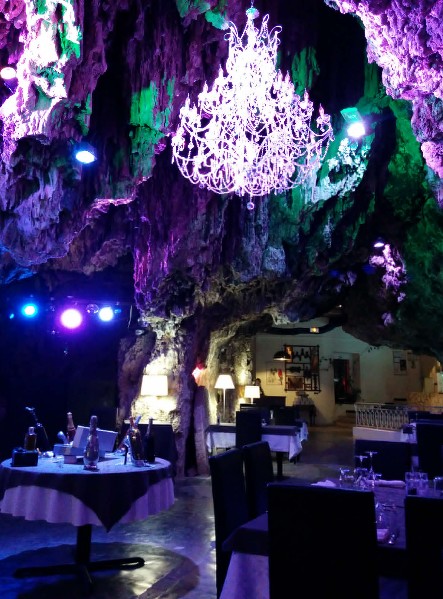 (oui vous allez vraiment diner dans une grotte, et le lieu semble magnifique avec des jeux de lumière sur les pierres etc).