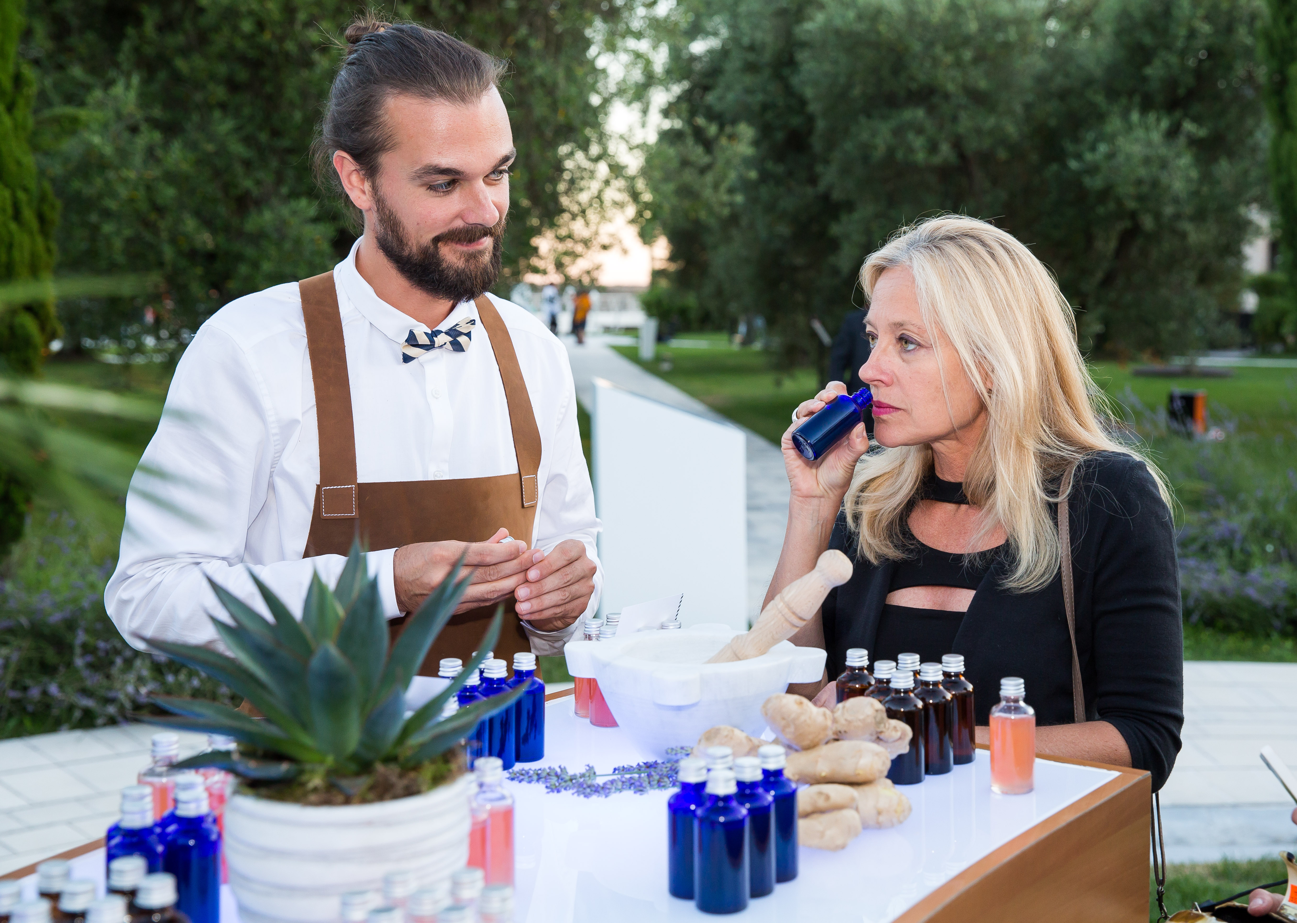 La gastronomie italienne fait part intégrante de l’hôtel que ce soit à travers les différents restaurants mais aussi des cours de cuisine et d’oenologie qui sont proposés aux vacanciers. Nous avons d’ailleurs pu rencontrer le sommelier de l’hôtel pour un atelier, malgré son jeune age, il s’agit d’un des meilleurs sommeliers du Monde et du meilleur sommelier d’Italie.