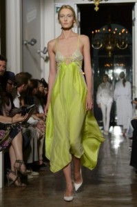 En plus d’une soie dévorée qui fait écho au processus de mutation reptilien, des écailles découpées ont été ajoutées au graphisme de ces deux tenues afin d’accentuer la ressemblance avec le serpent. Les similitudes sont si frappantes que l’association des deux donne naissance à une matérialisation sensuelle de la femme.
