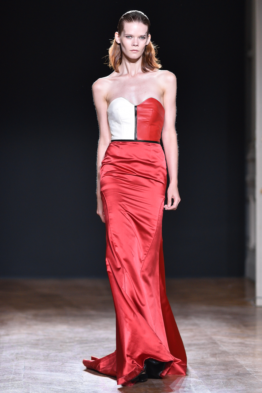 Mutine et prête à conquérir le monde dans des robes en soie et cuir, rehaussées de corsets rouges feu qui lui donne des allures de guerrière moderne, la femme Didit Hediprasetyo n’est pas enfermée dans ses tenues, elles sont l’expression de sa vigueur. Le corset ne domine pas son corps , mais l’épouse délicatement pour le sublimer. Le créateur décrit sa collection comme « une ode à la force qui anime l’âme féminine ».