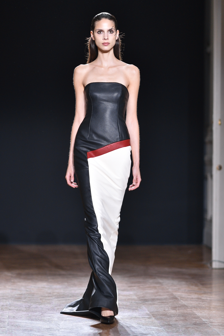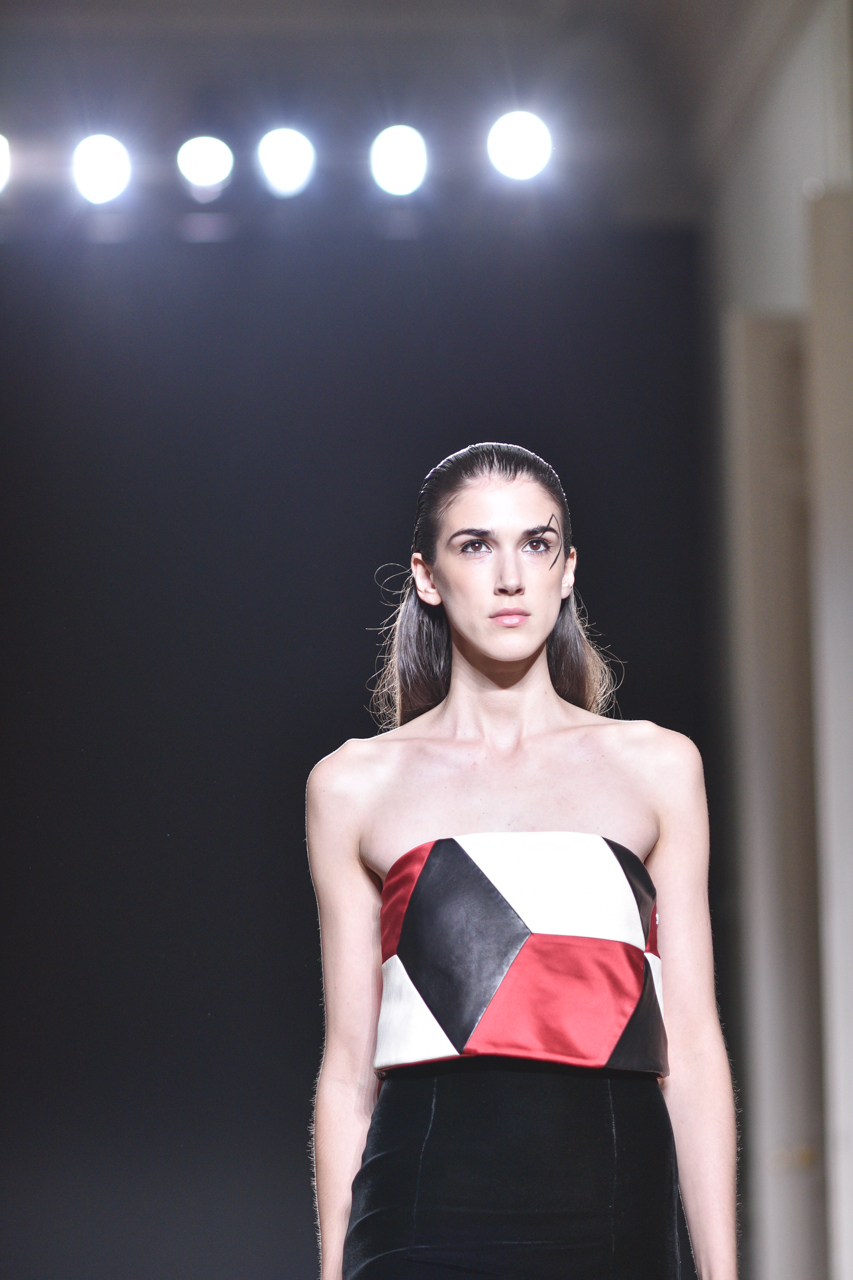 La force est partout dans cette collection, que ce soit dans le vif des couleurs ou dans le choix des matières. Le cuir et les robes bustiers, forment une armure pour cette femme qui part à la bataille, bataille des coeurs à laquelle elle joue effrontément, l’air de rien.