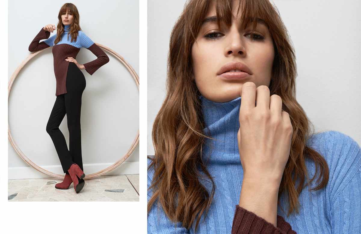 Frange, pantalon large, costume masculin, petite robe trapèze, pull col roulés : une rencontre entre le chic de Diane Keaton et le look parisien moderne de Françoise Hardy. Des femmes aux personnalités fortes dont les allures ont définitivement marqué l’histoire de la mode. Plus que des looks, des attitudes : chics et décontractées. Un naturel qui rend envieuse. Ici, ces inspirations 1970’s s’actualisent par une pointe sportive : notamment avec les baskets « shine shine Baby », ou encore la place d’éléments évoquant le sport ( les cerceaux) dans la campagne.