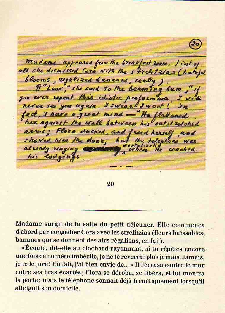 Il ne faut pas prendre ce livre comme un roman, mais comme un précieux cadeau, enfermé dans un écrin ; une découverte du travail d’écriture de l’auteur, une plongée dans les coulisses. Le manuscrit original est composé de fiches bristols, encore raturées, qui sont présentes en face de chaque pages imprimées dans l’édition Gallimard du livre.