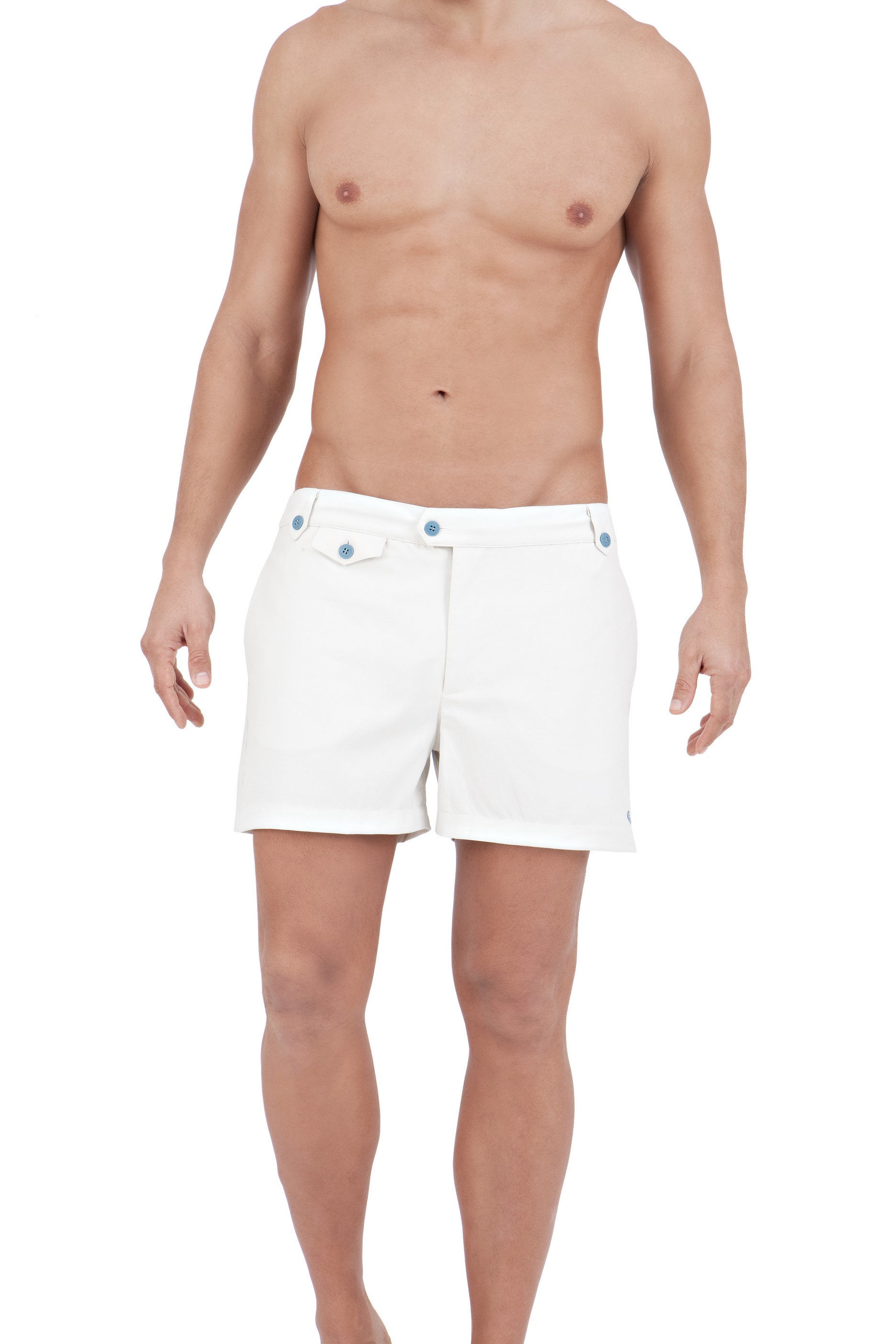 Le choix de matières insolites de haute qualité résistantes à l’eau de mer, au soleil et au chlore ; aux détails simples et délicats – des poches à rabat, aux boutons soft-touch ou oeillets selon les modèles, tous muni d’un slip interne en polyamide élastique pour un confort ultime – met en évidence un savoir-faire irréprochable : l’authenticité d’antan se mêlant
