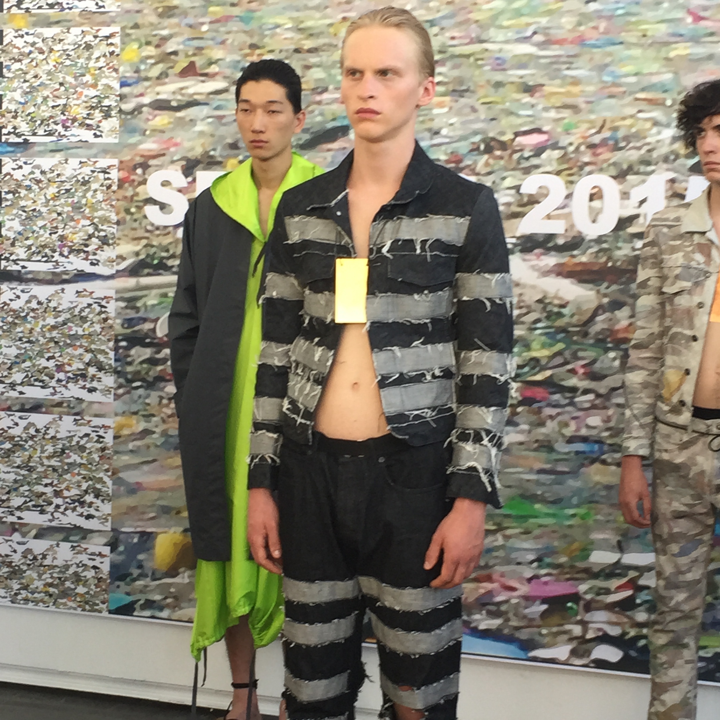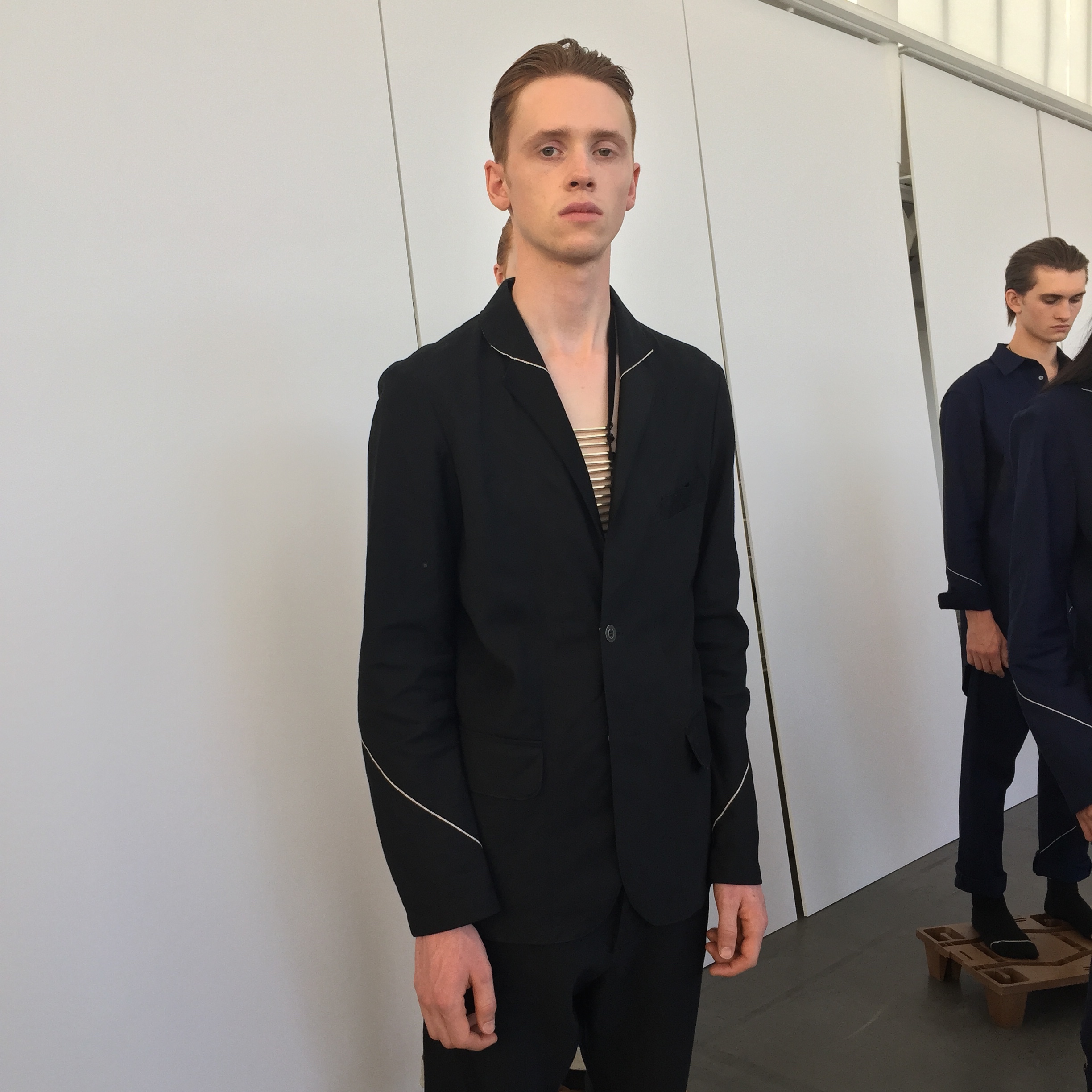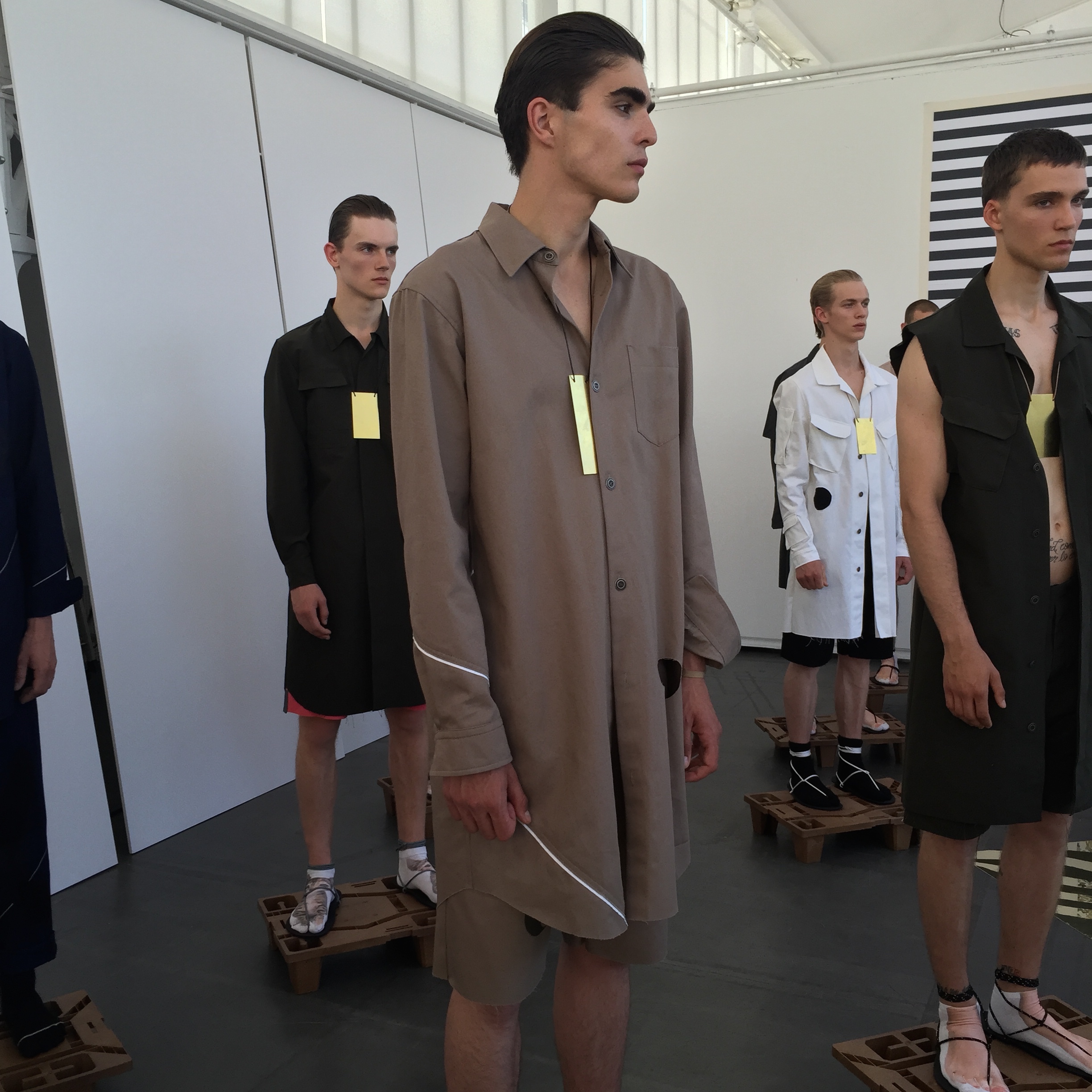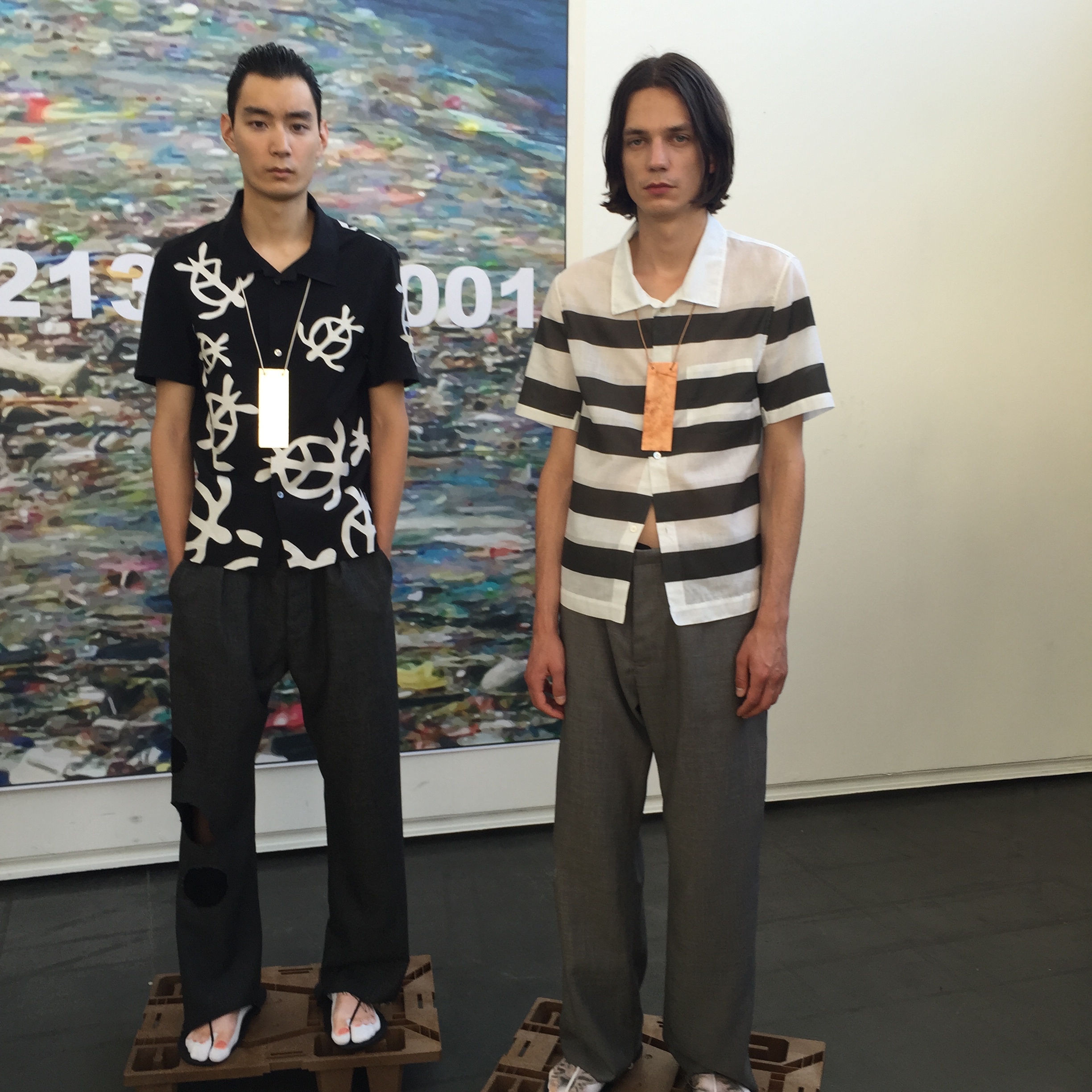 Costumes tailor très près du corps, chemises longues rappelant parfait des robes, manches aussi longues qui allongent la silhouette. No Editions joue avec les volumes, les tailles et les matières pour allonger la silhouette au maximum. On surprend parfois quelques inspirations bouddhistes, ou graffiti.