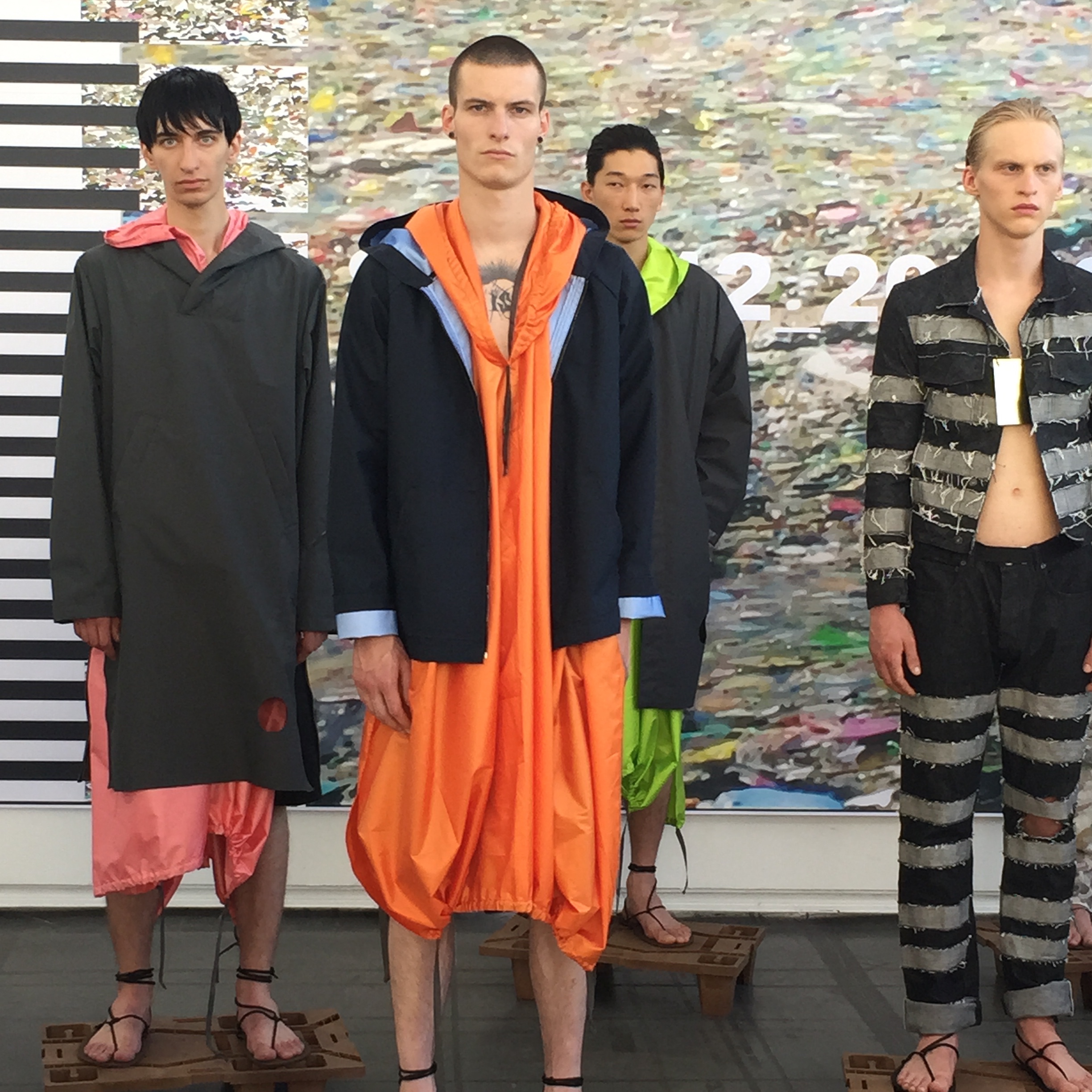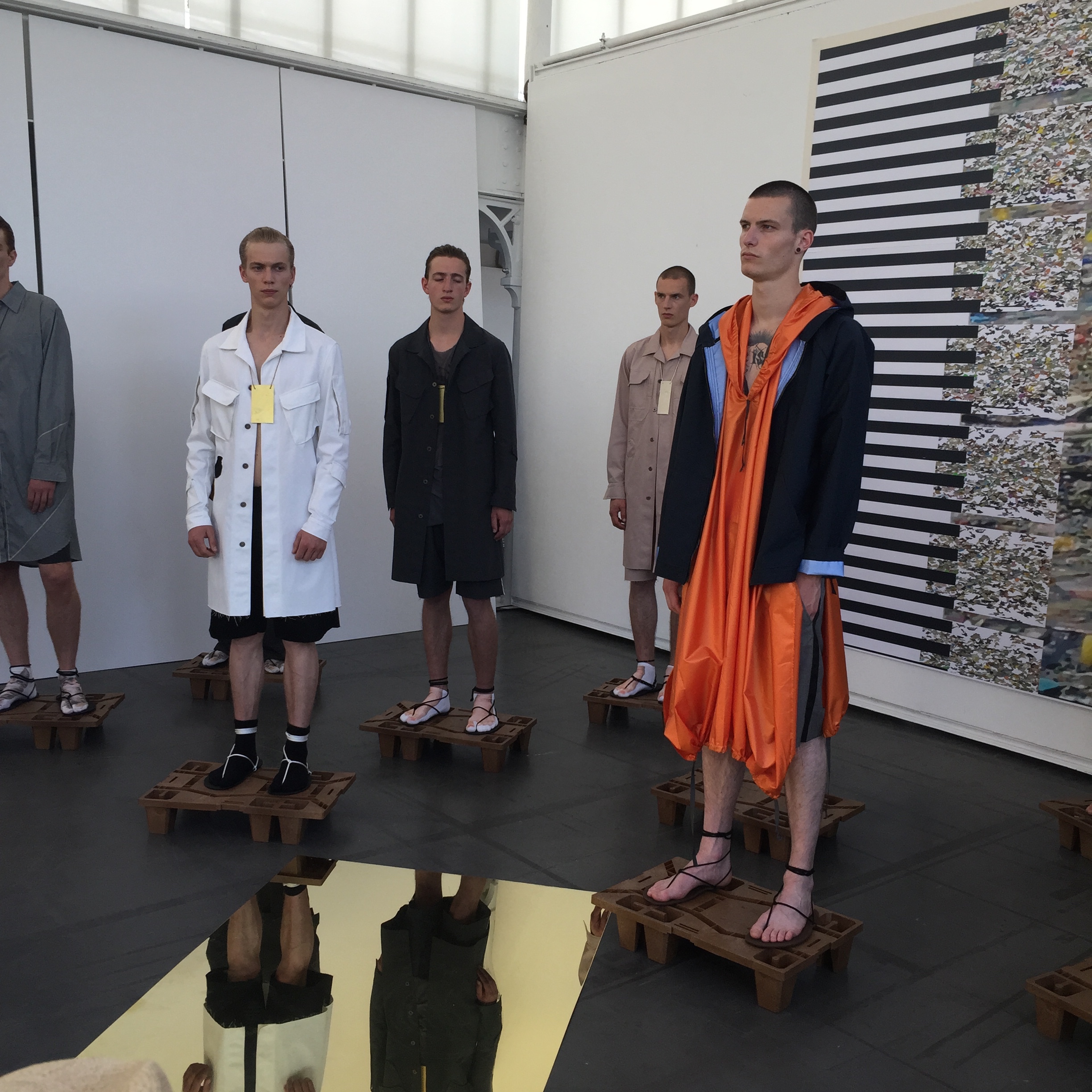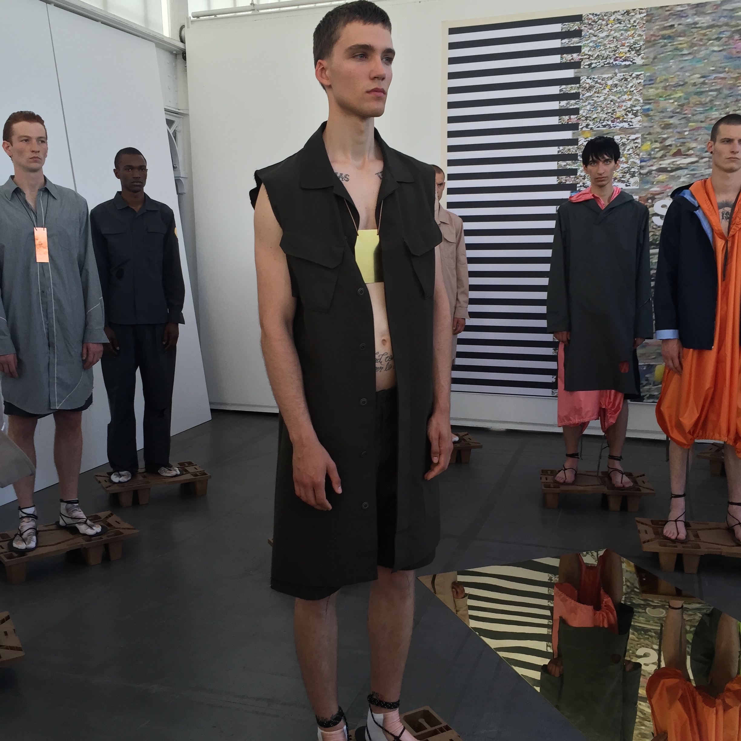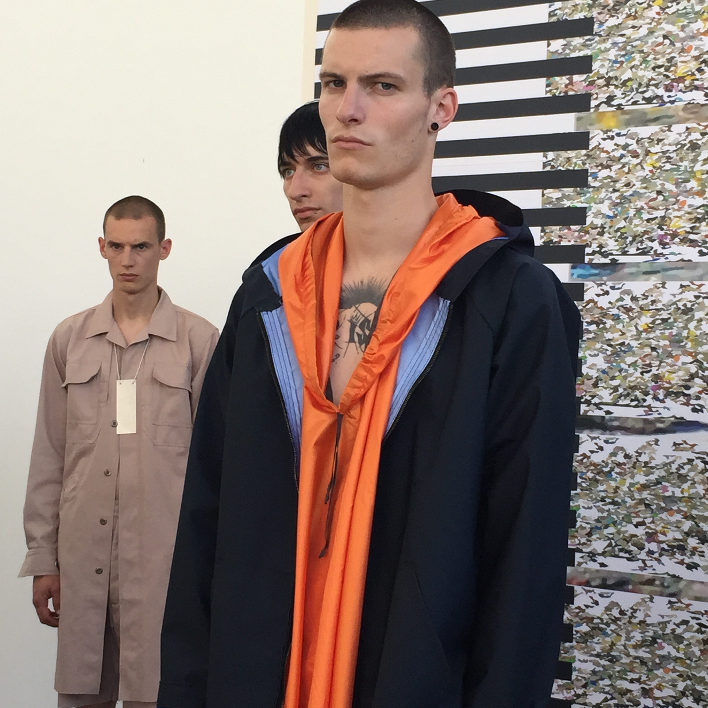 Costumes tailor très près du corps, chemises longues rappelant parfait des robes, manches aussi longues qui allongent la silhouette. No Editions joue avec les volumes, les tailles et les matières pour allonger la silhouette au maximum. On surprend parfois quelques inspirations bouddhistes, ou graffiti.