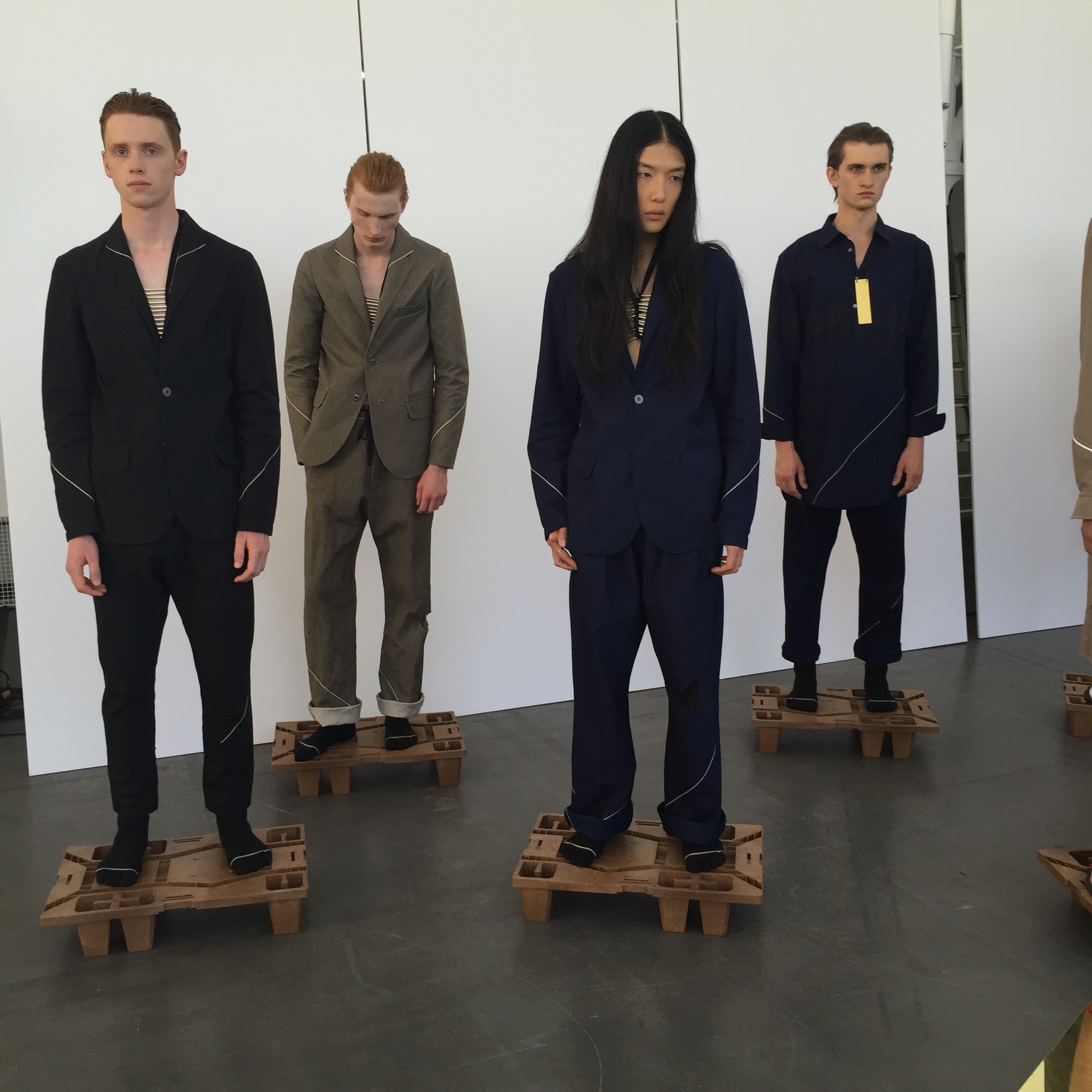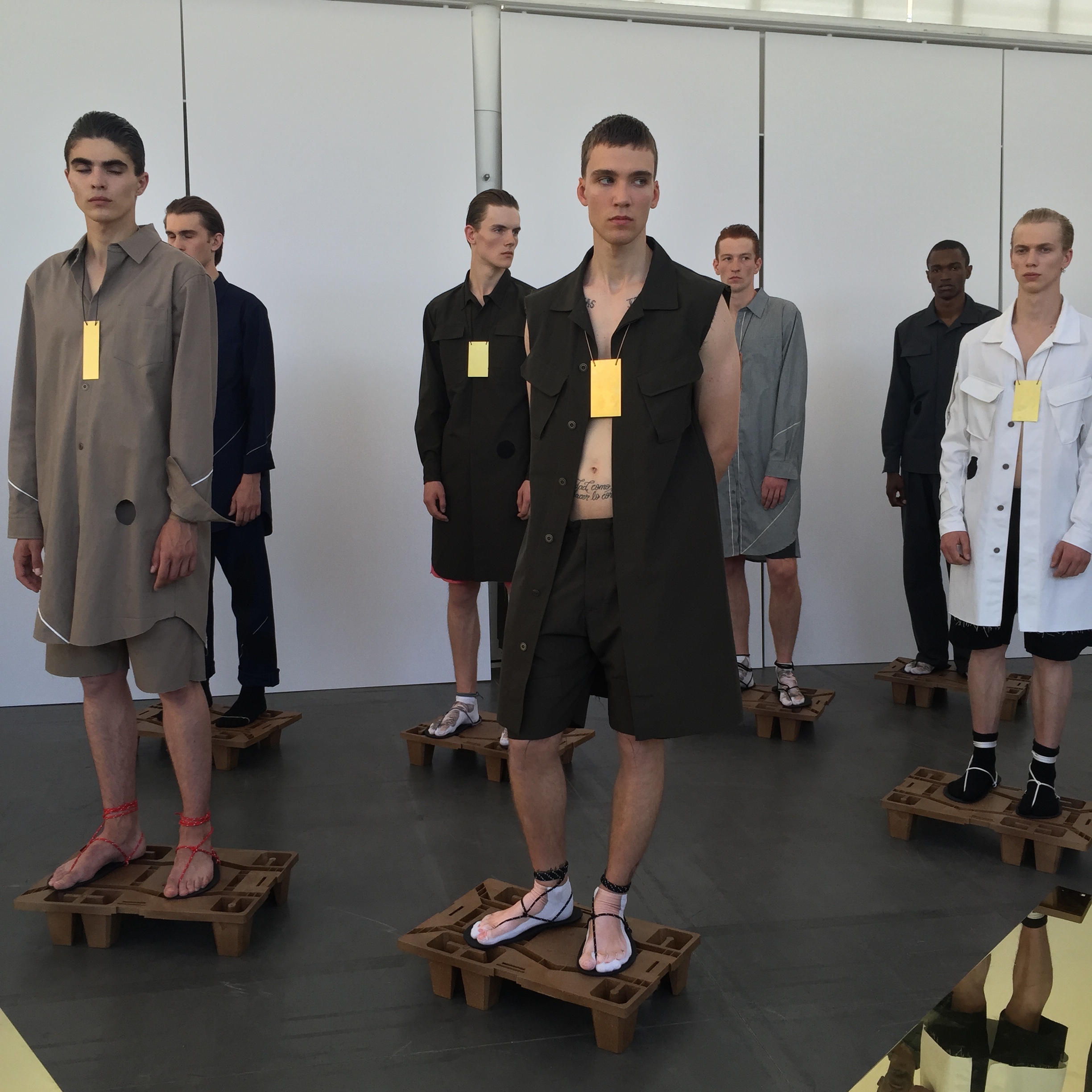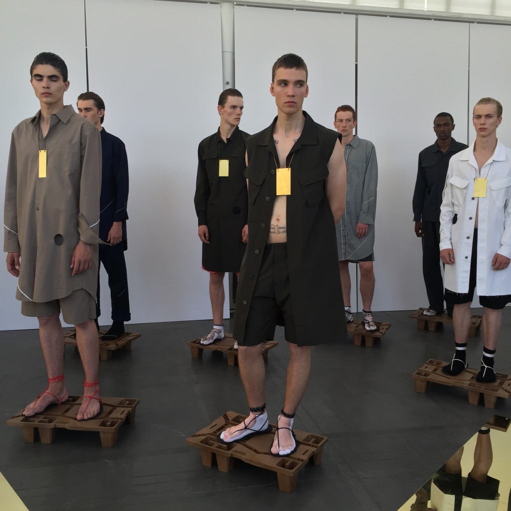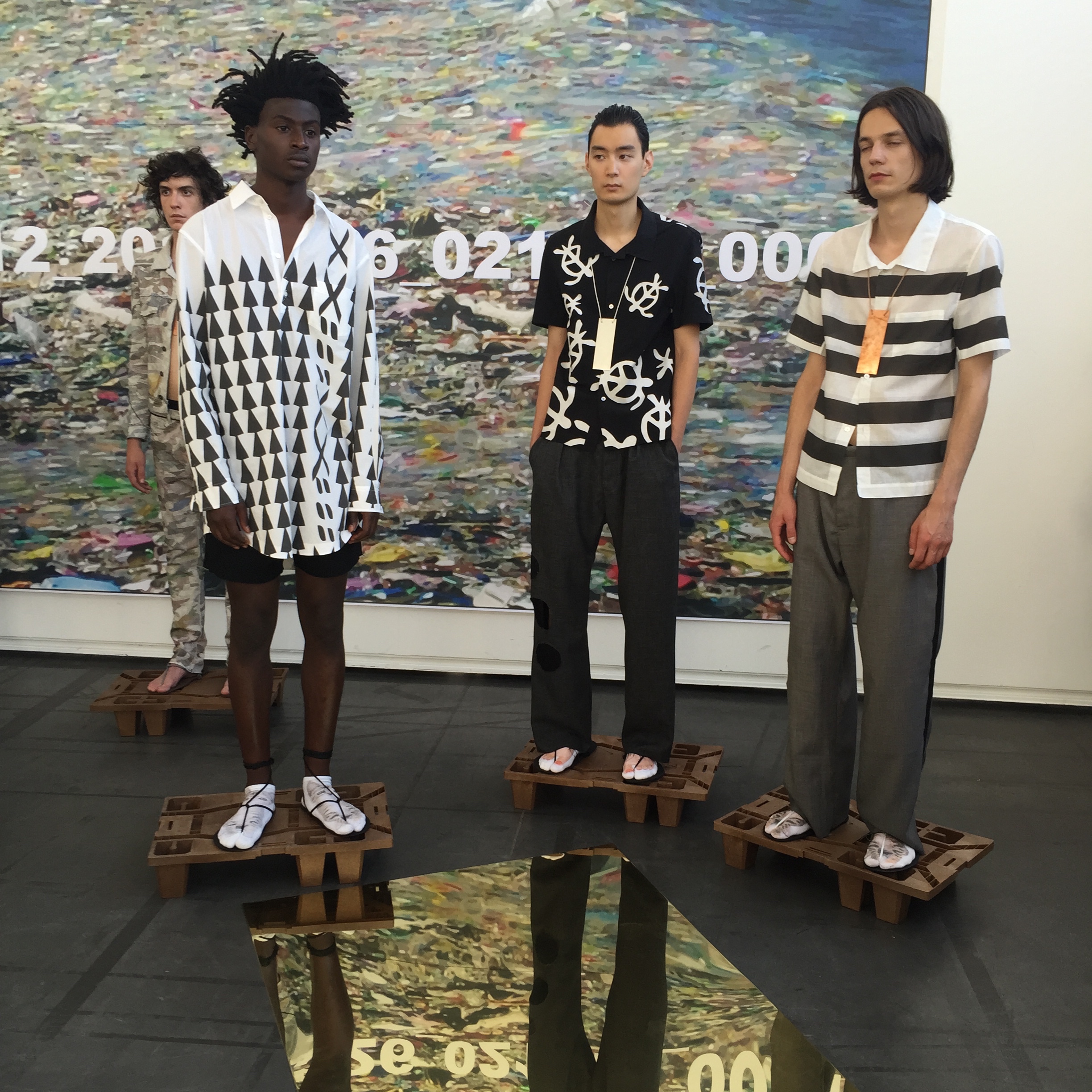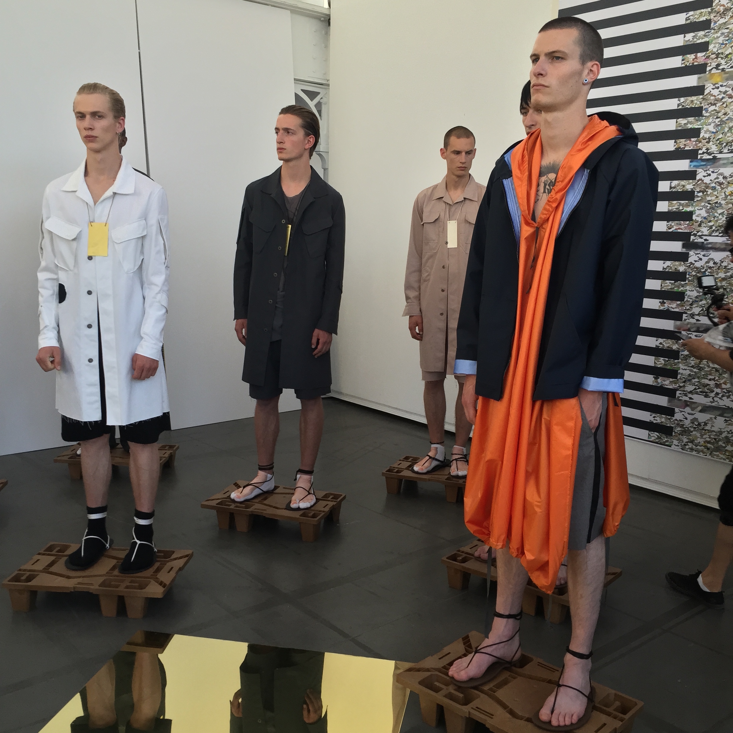 Costumes tailor très près du corps, chemises longues rappelant parfait des robes, manches aussi longues qui allongent la silhouette. No Editions joue avec les volumes, les tailles et les matières pour allonger la silhouette au maximum. On surprend parfois quelques inspirations bouddhistes, ou graffiti.