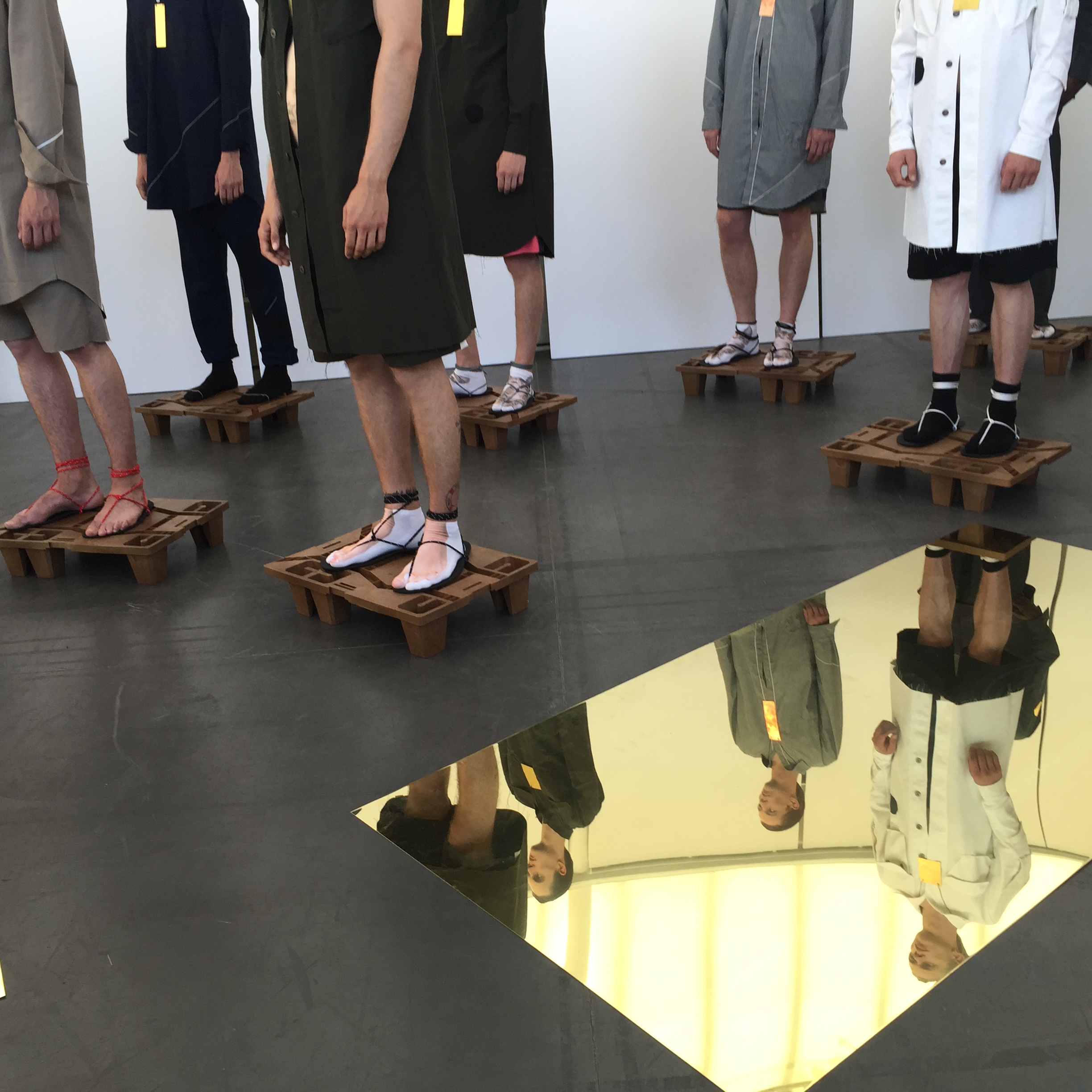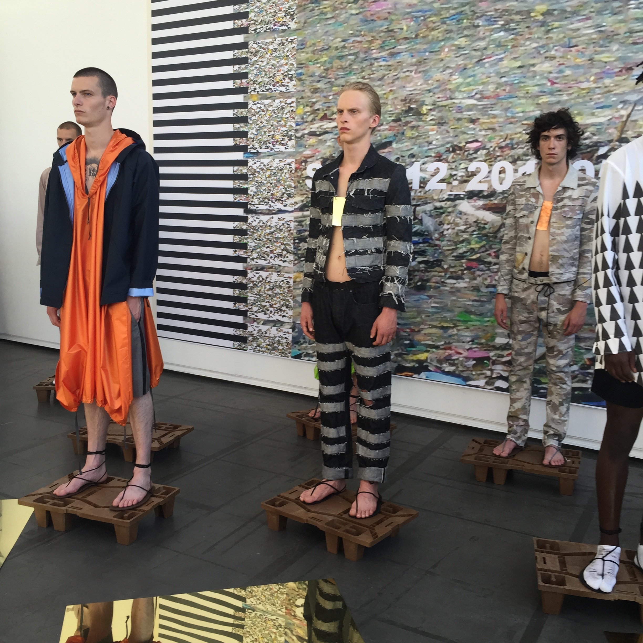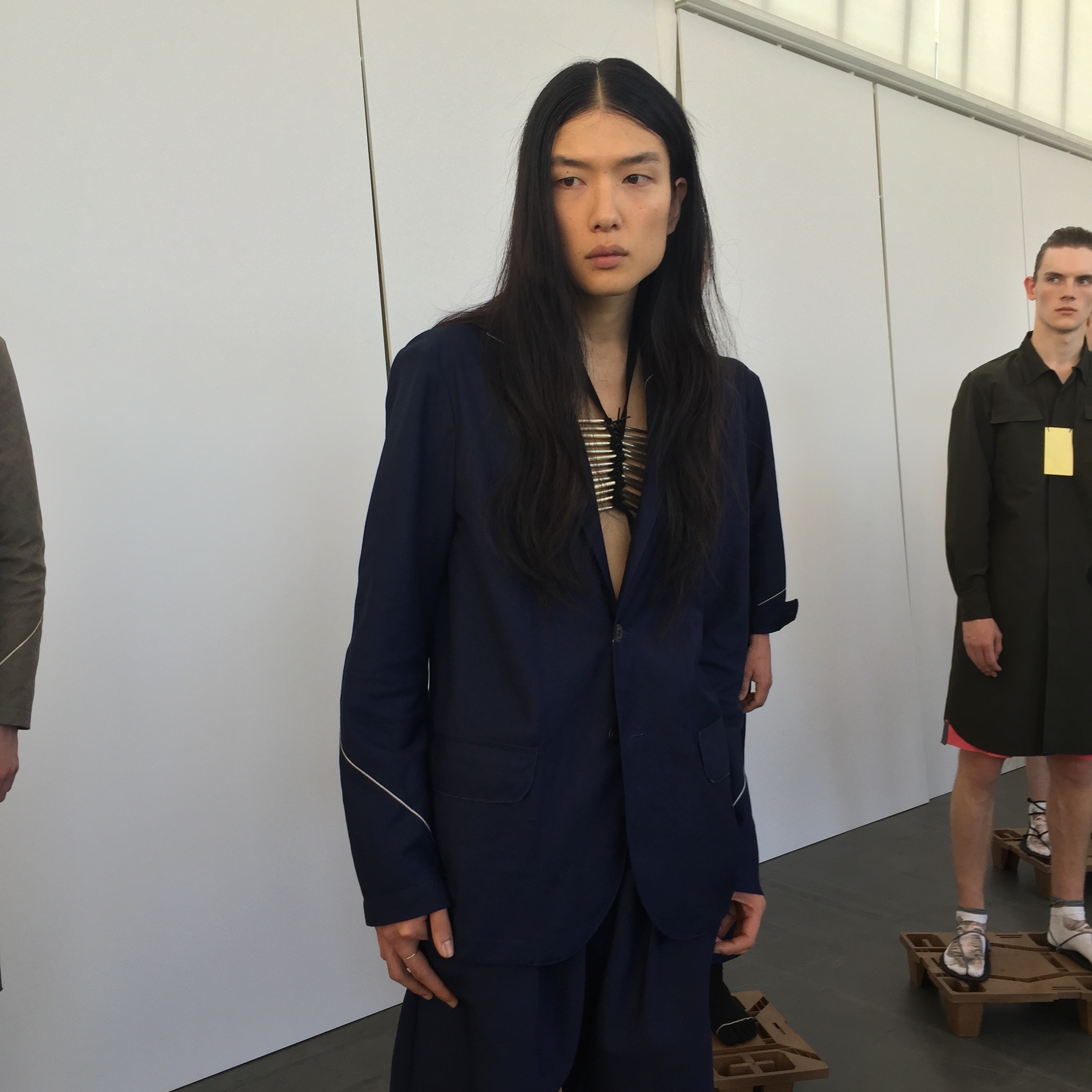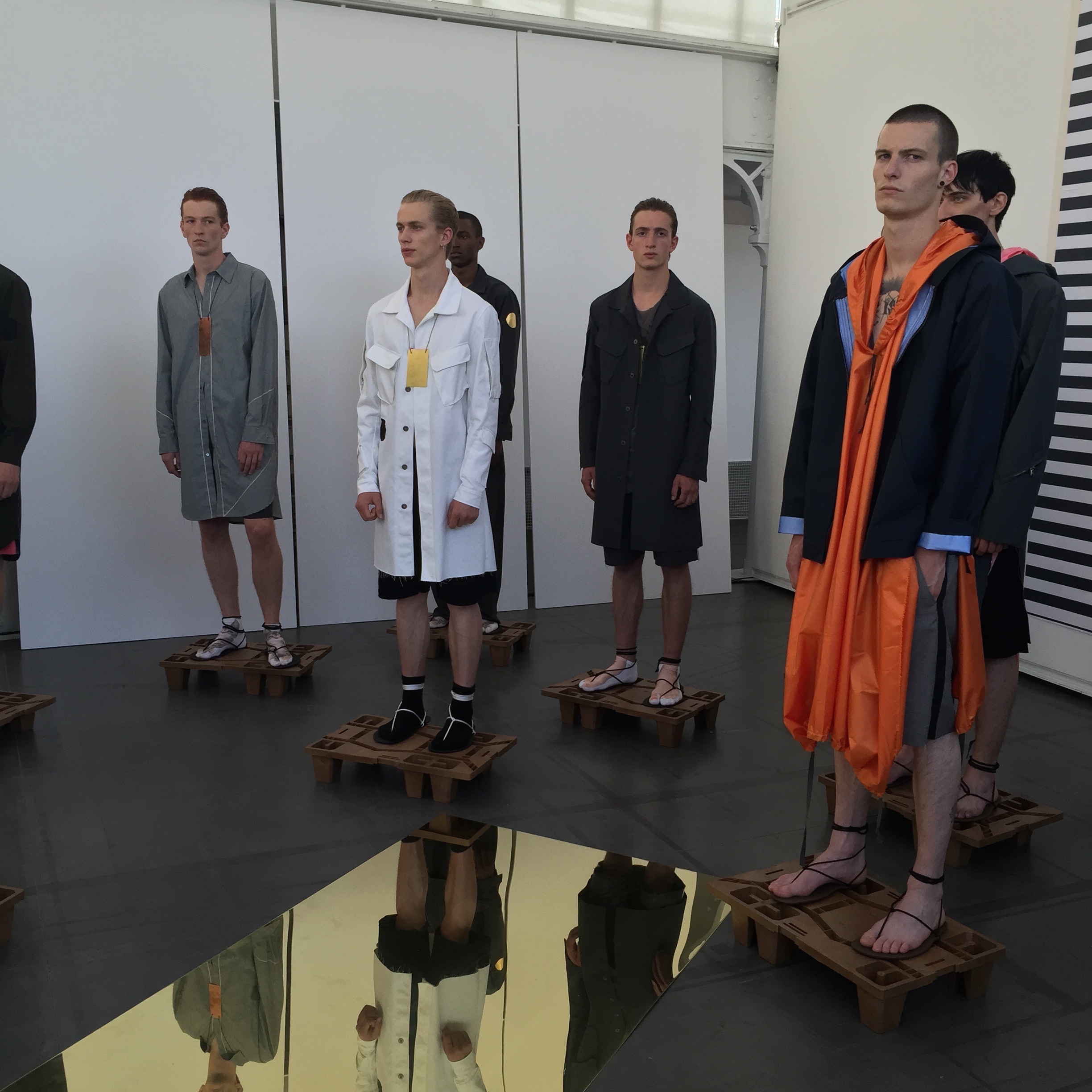 Costumes tailor très près du corps, chemises longues rappelant parfait des robes, manches aussi longues qui allongent la silhouette. No Editions joue avec les volumes, les tailles et les matières pour allonger la silhouette au maximum. On surprend parfois quelques inspirations bouddhistes, ou graffiti.