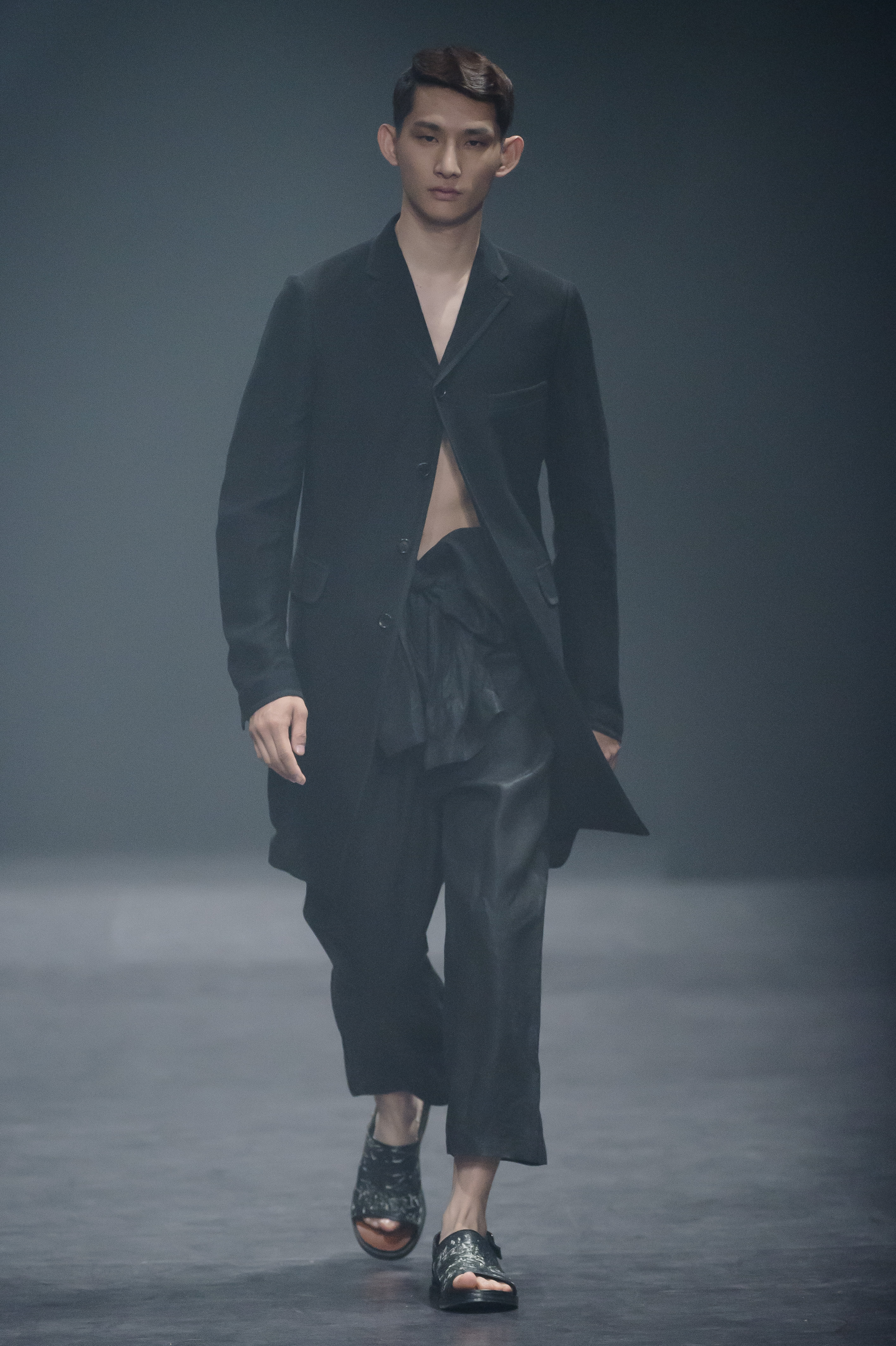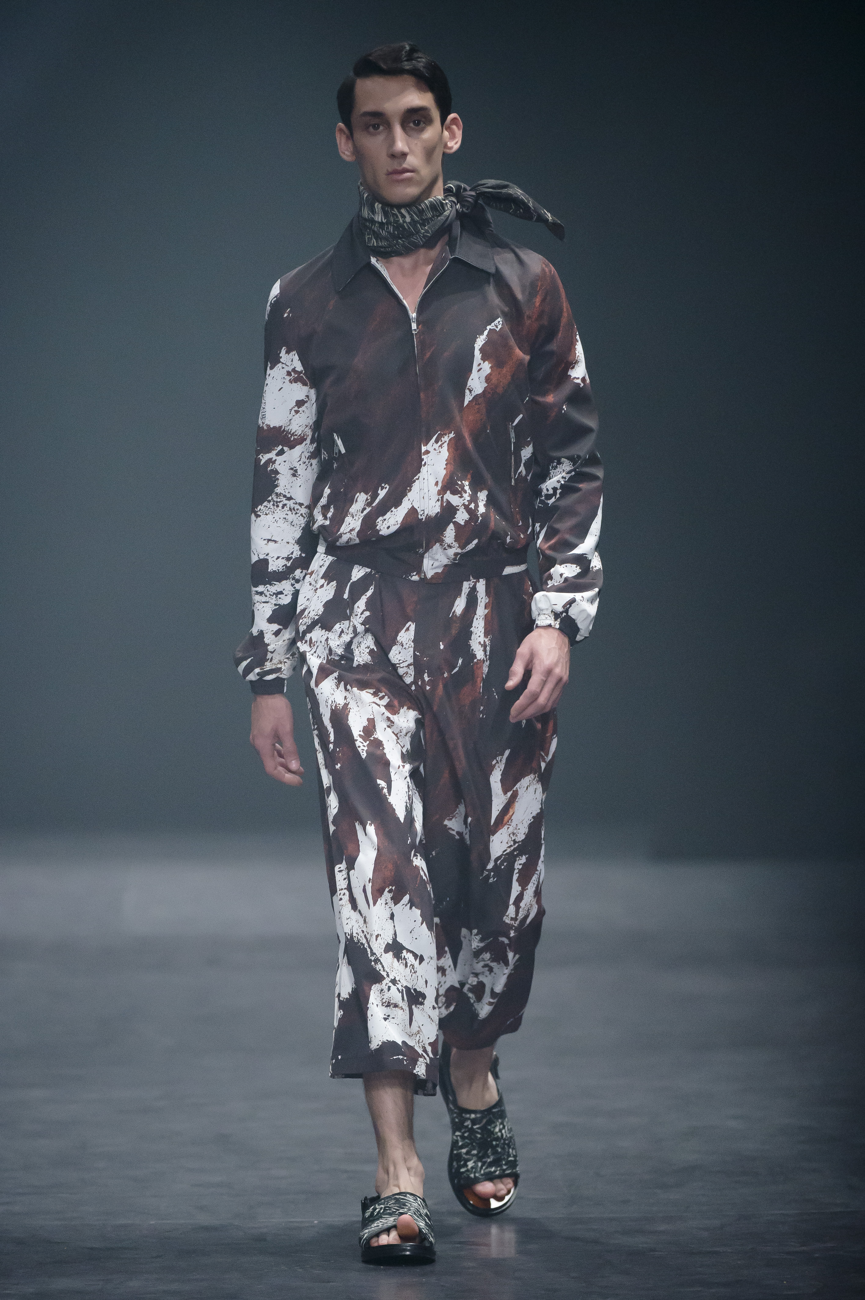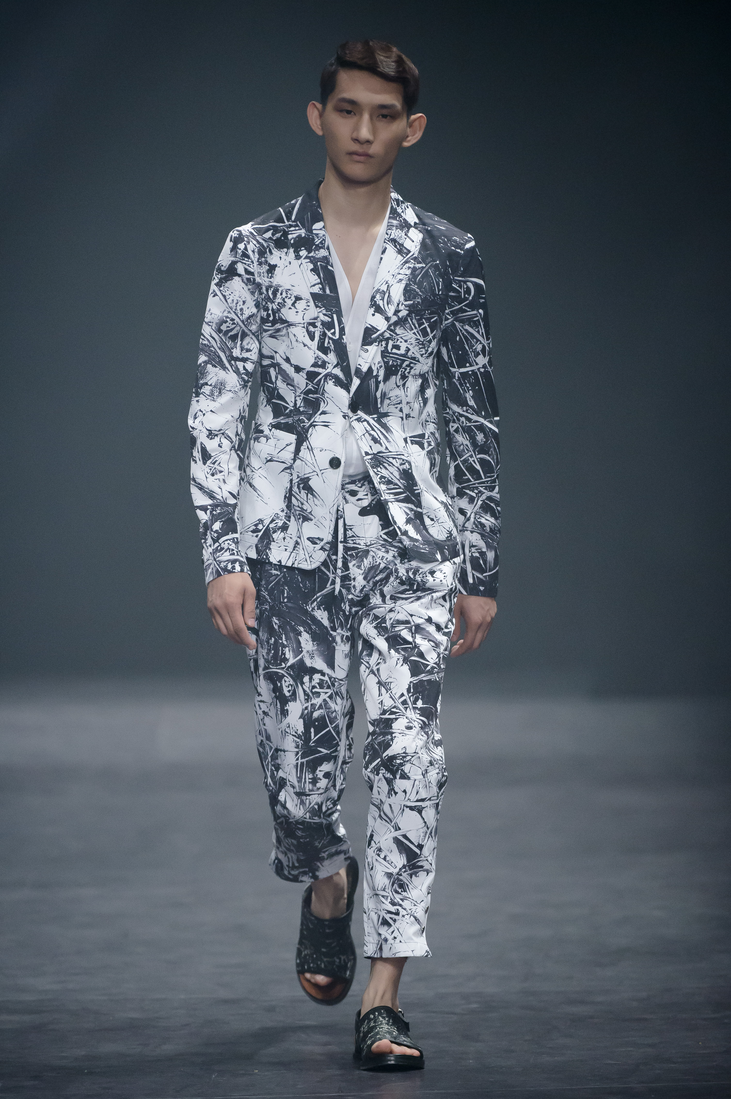 Songzio nous surprend encore une fois cette saison avec une collection printemps été 2016 forte donnant la part belle aux imprimés minéraux et des jeux de matières surprenants. Les imprimés envahissent les costumes de la collection, ils rappellent la roche et ses différentes variantes de couleurs, tout en restant abstraits. On joue sur les silhouettes avec des coupes courtes, puis plus amples, l’accumulation de couches donne un effet trompe l’oeil. Les coupes sont toujours extrêmement précises. Une collection enlevée et moderne.