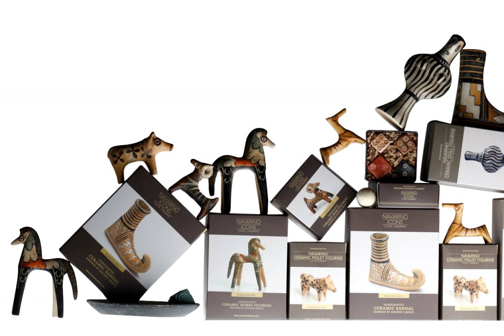 Le riche patrimoine culturel du Péloponnèse est également représenté à travers une gamme d’objets d’art dont des puzzles, des modèles 3D en papier kraft, des dés en céramiques ainsi que des figurines.