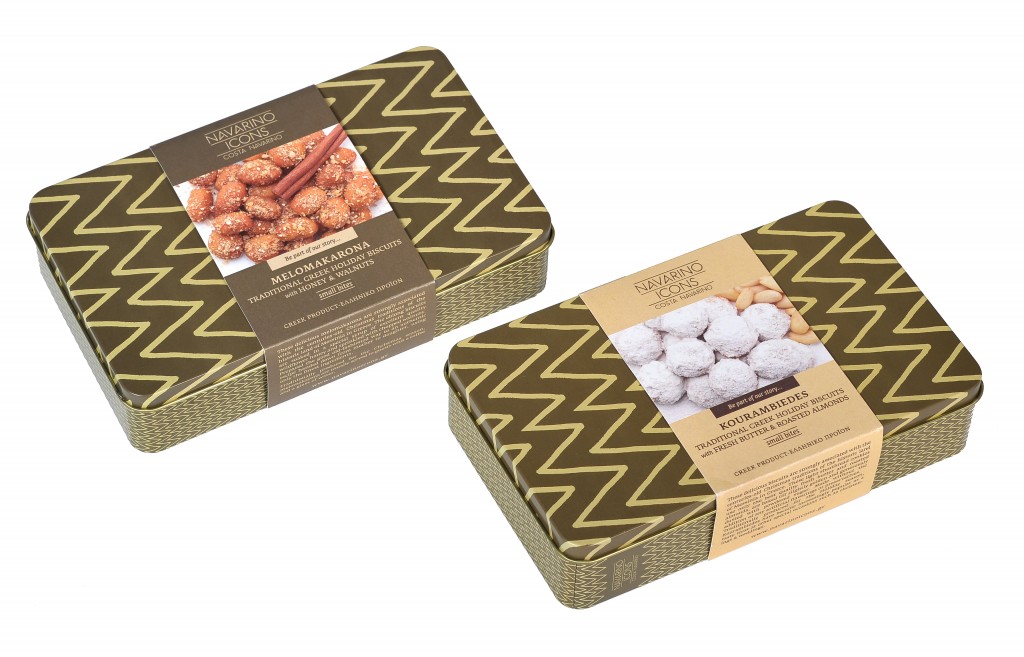 La gamme Navarino Icons se décline en plusieurs produits : huile d’olive extra vierge, olives de Kalamata, confitures de fruits maisons, biscuits à l’huile d’olive extra vierge et à l’orange, miel de fleurs sauvages, vinaigre au romarin et au thym, sel aromatisé au romarin, fruits confits régionaux, poivrons rouges grillés, mini poivrons verts et concassés d’aubergines grillées. Tous ces produits culinaires révèlent les richesses naturelles de la région, qui a toujours fait partie intégrante de la culture et de l’économie de la Messénie.