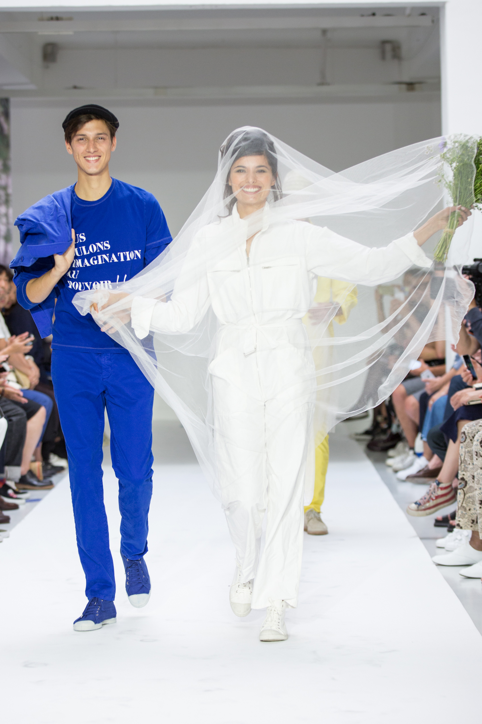 Les années passent et ne se ressemblent pas chez Agnès B. Cette année Agnès B a confié sa collection à Jerome Pierre qui vit entre Paris et Berlin. Attiré par l’ultra-moderne et le minimalisme, il conçoit le vêtement comme une architecture fluide, qui met en scène le mouvement. Fin 2014, il rencontre Agnès et crée pour cette saison un vestiaire quotidien où le confort, la légèreté et la fluidité sont conjugués dans des matières nobles, habituellement réservées au soir et au formel. Les motifs s’inspirent de l’Art Génératif, symbolisant l’Idée, structurée mais immatérielle… une invitation à laisser ses pensées s’envoler pour laisser apparaître le Moment.