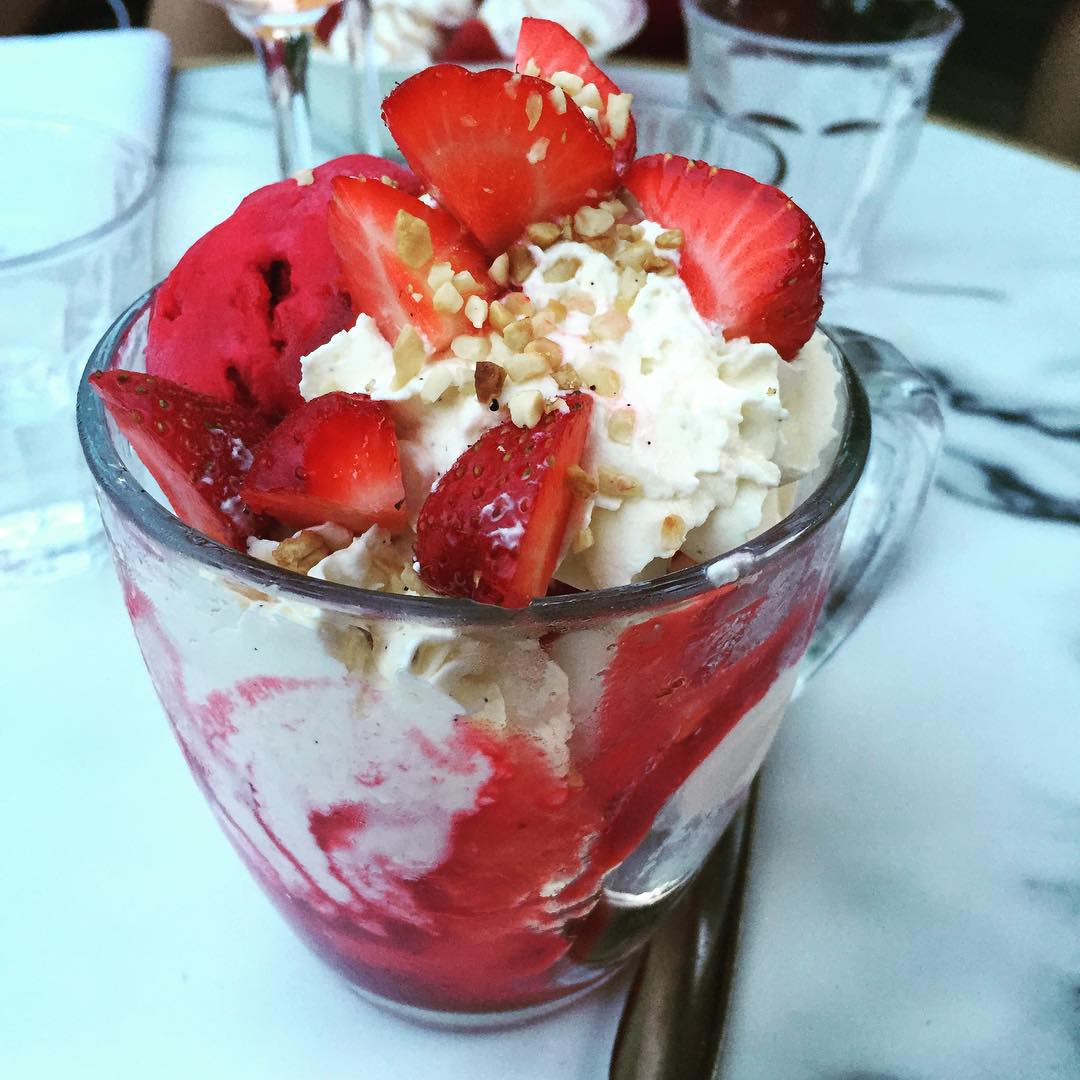 L’après-midi ou en fin de repas, on se laisser tenter par la panna cotta pêche-verveine ou une coupe glacée du glacier Pedone…