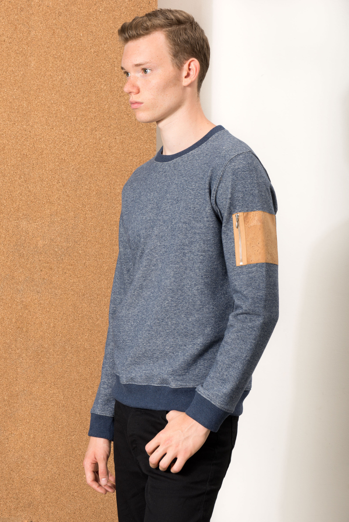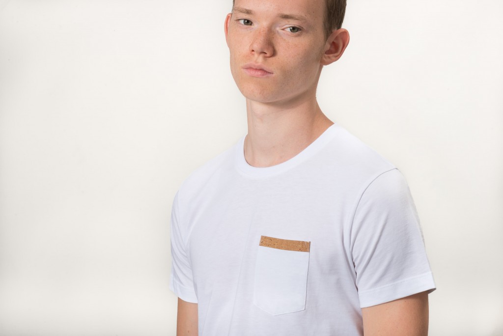 Le cuir liège se décline en poche biais sur les t‐shirts, mais aussi en poche zippé sur les blousons