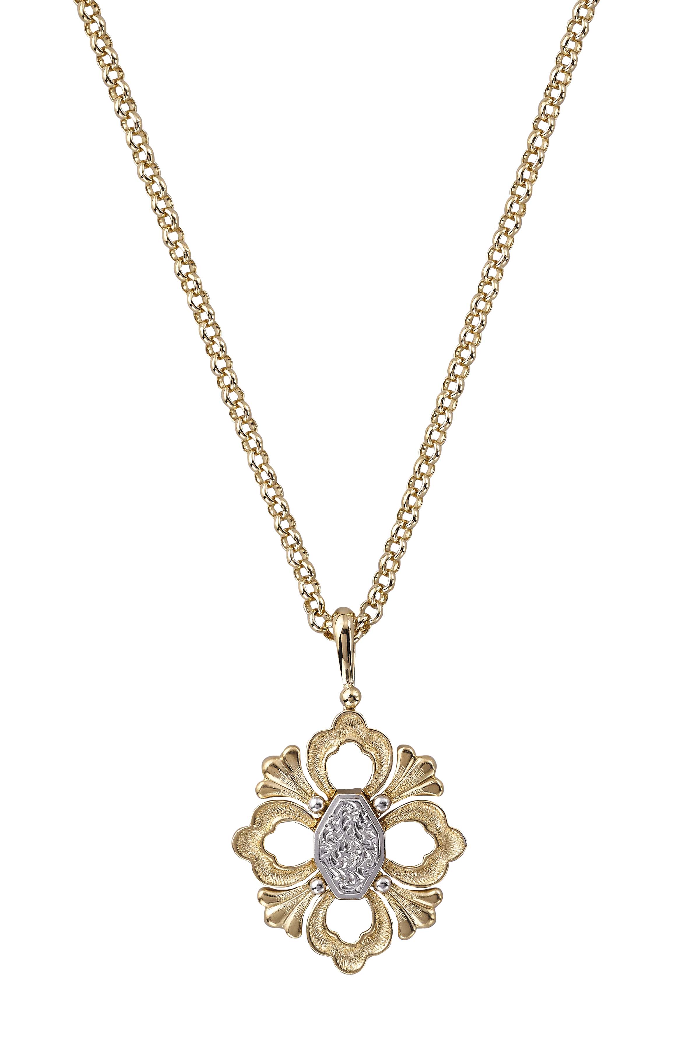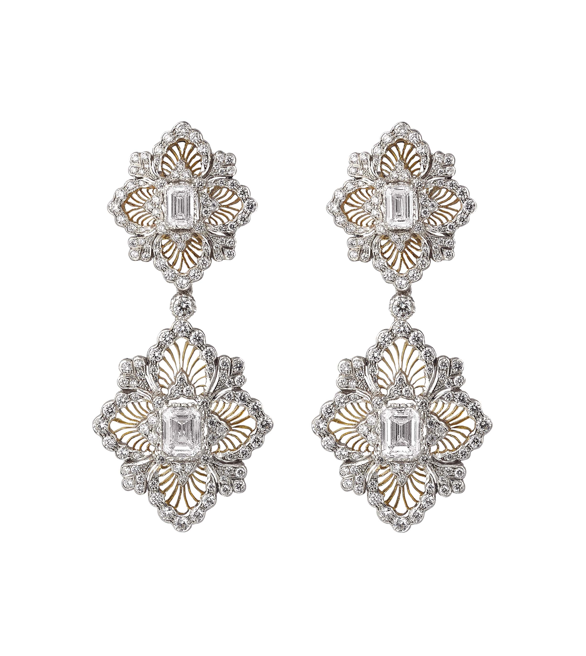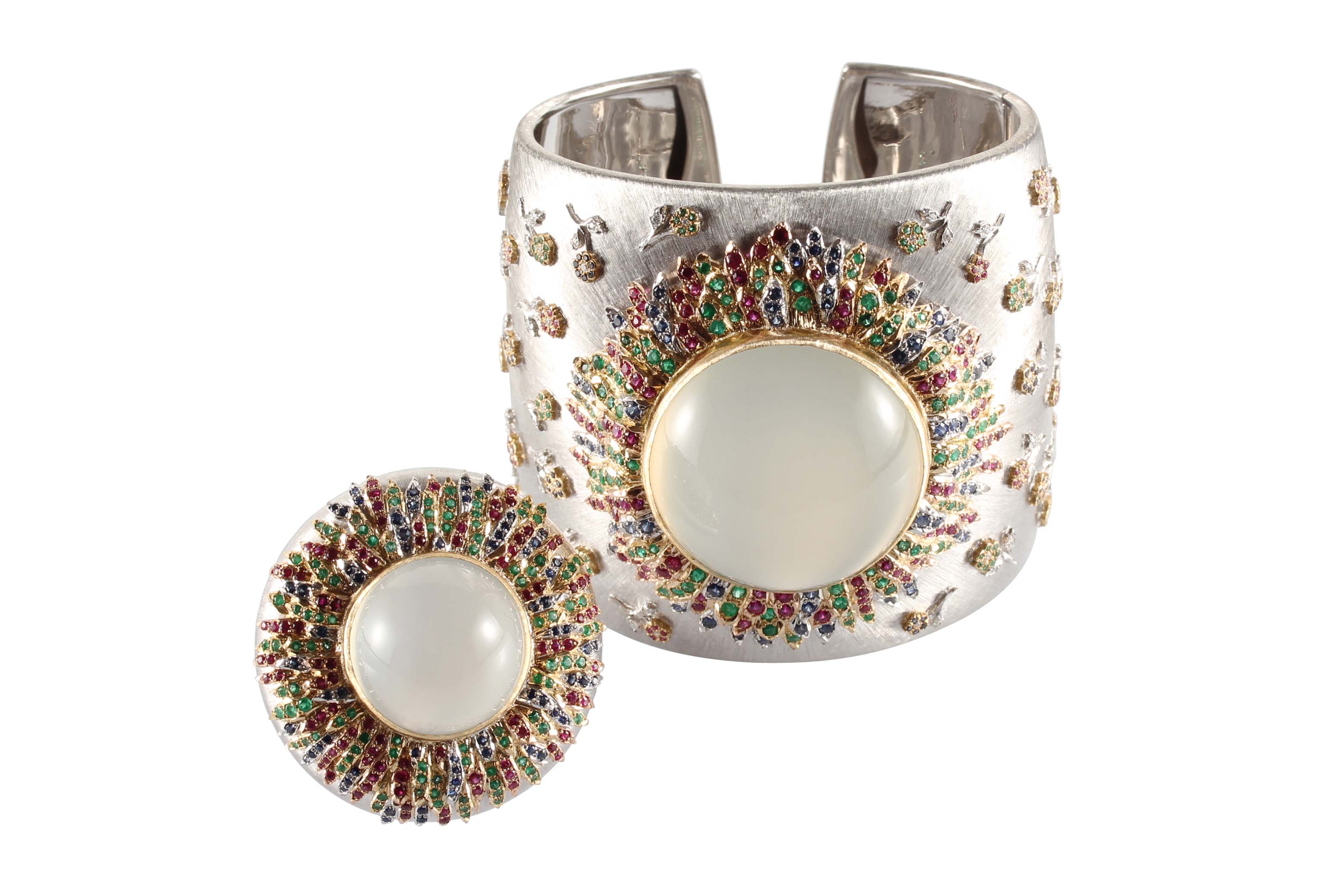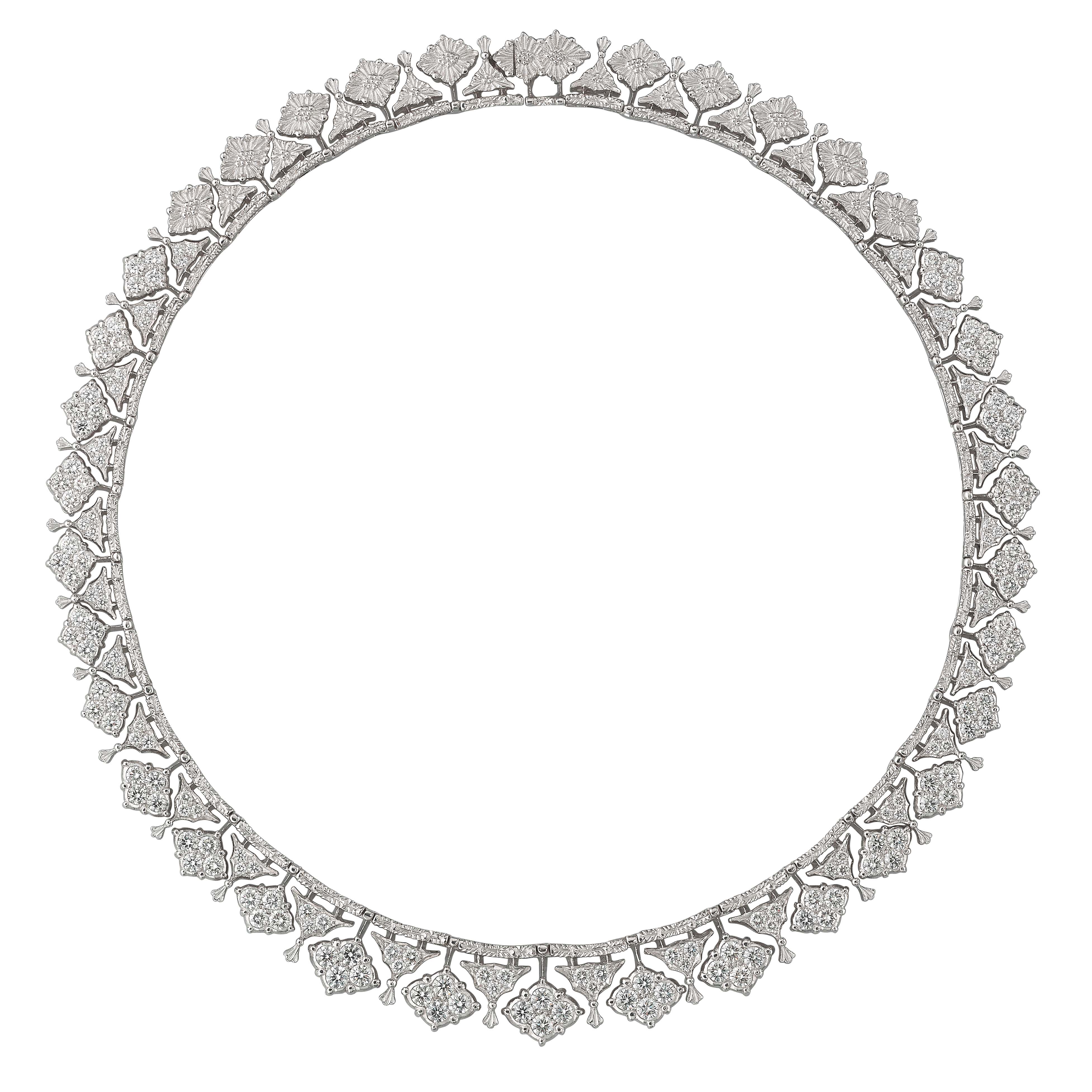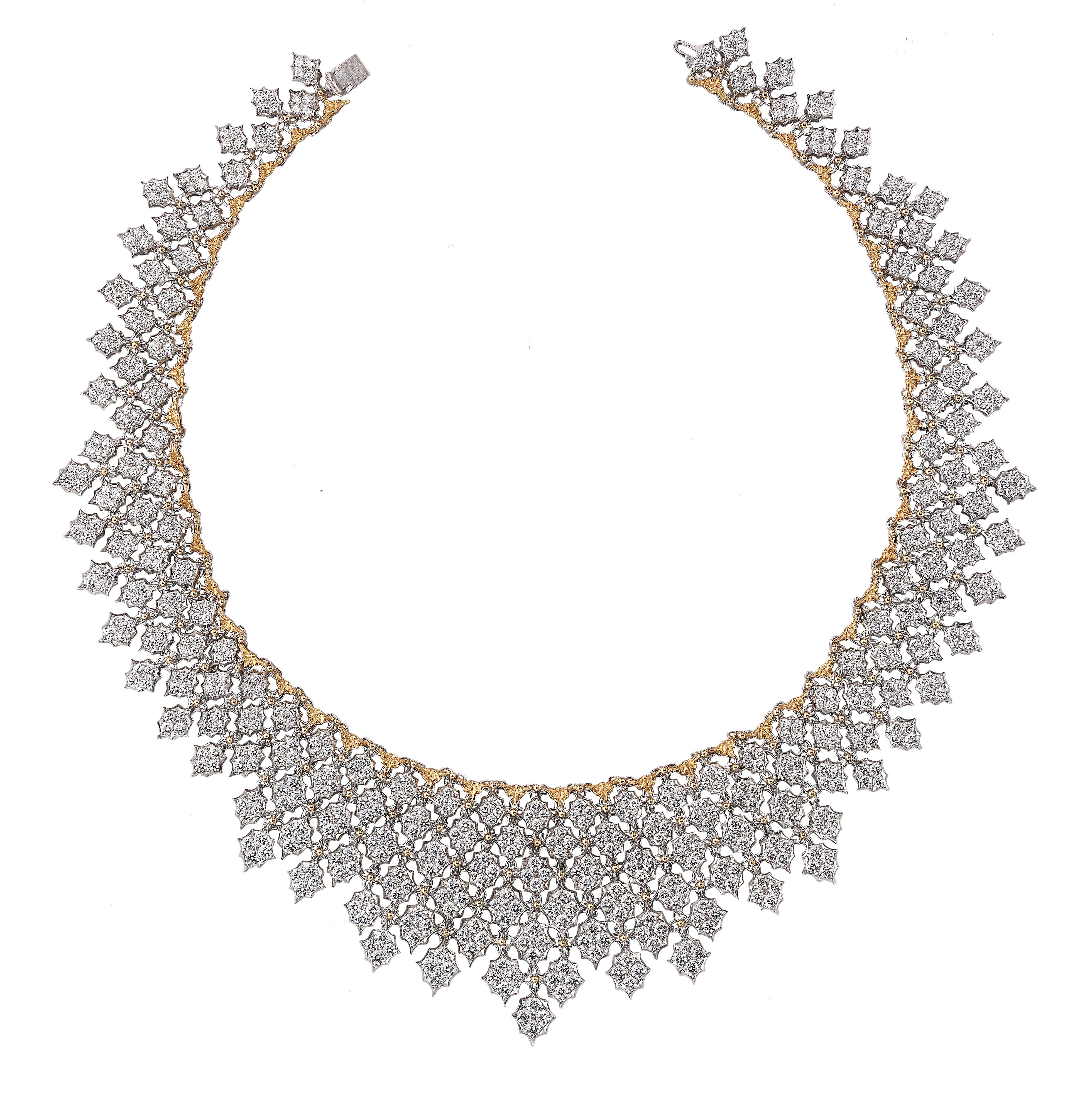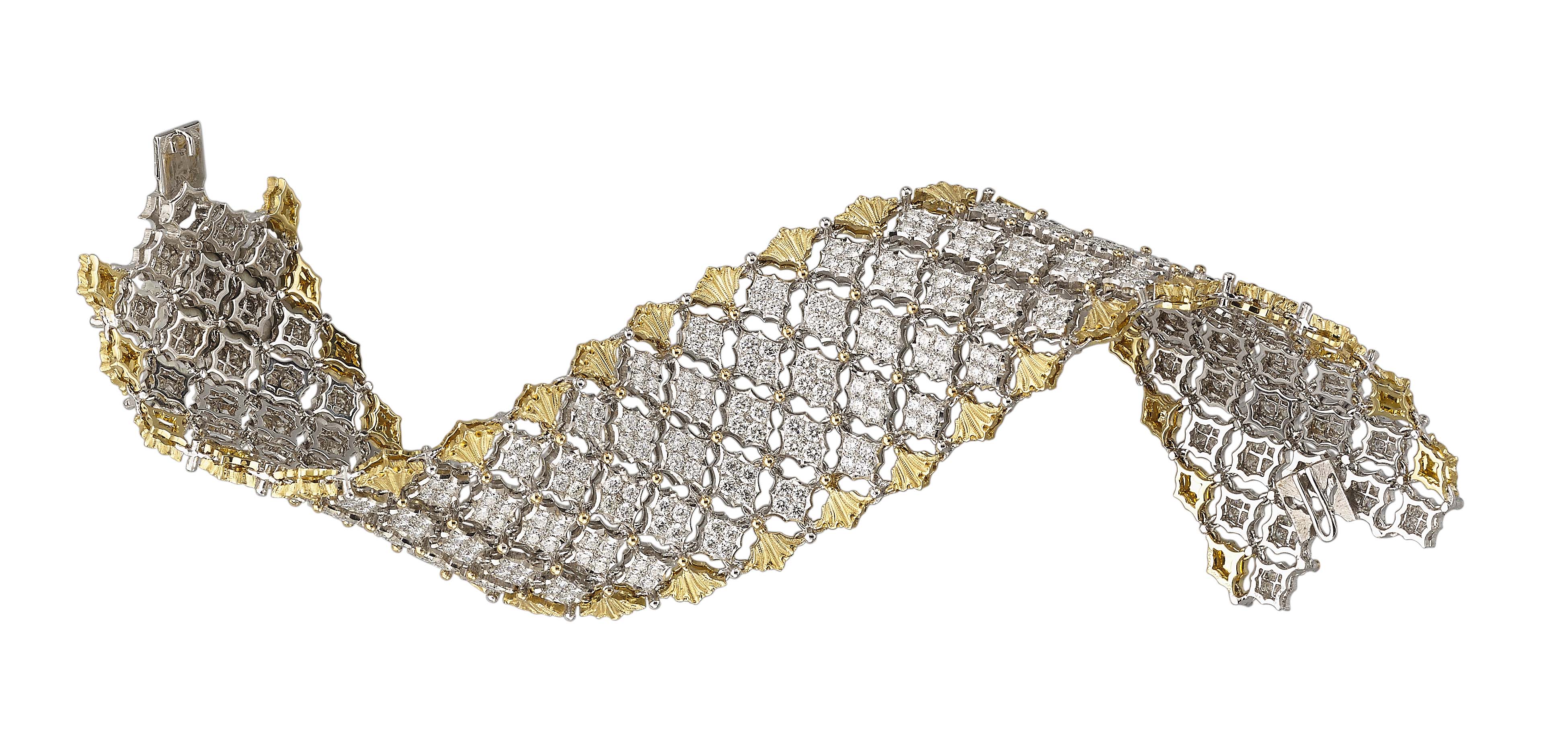 L’élément floral de la collection s’inspire du logo de la maison, qui rappelle l’aspect visuel de la coupole de l’église du San Carlino à Rome. Elle rappelle également la rosace située au-dessus de l’entrée principale du Château de Roccolo à Busca et les décorations qui surplombent les colonnes du Palais des Doges à Venise, puisant ainsi dans des courants artistiques qui sont une grande source d’inspiration pour Buccellati, du style de la Renaissance au style gothique vénitien, en passant par le néo-médiéval.