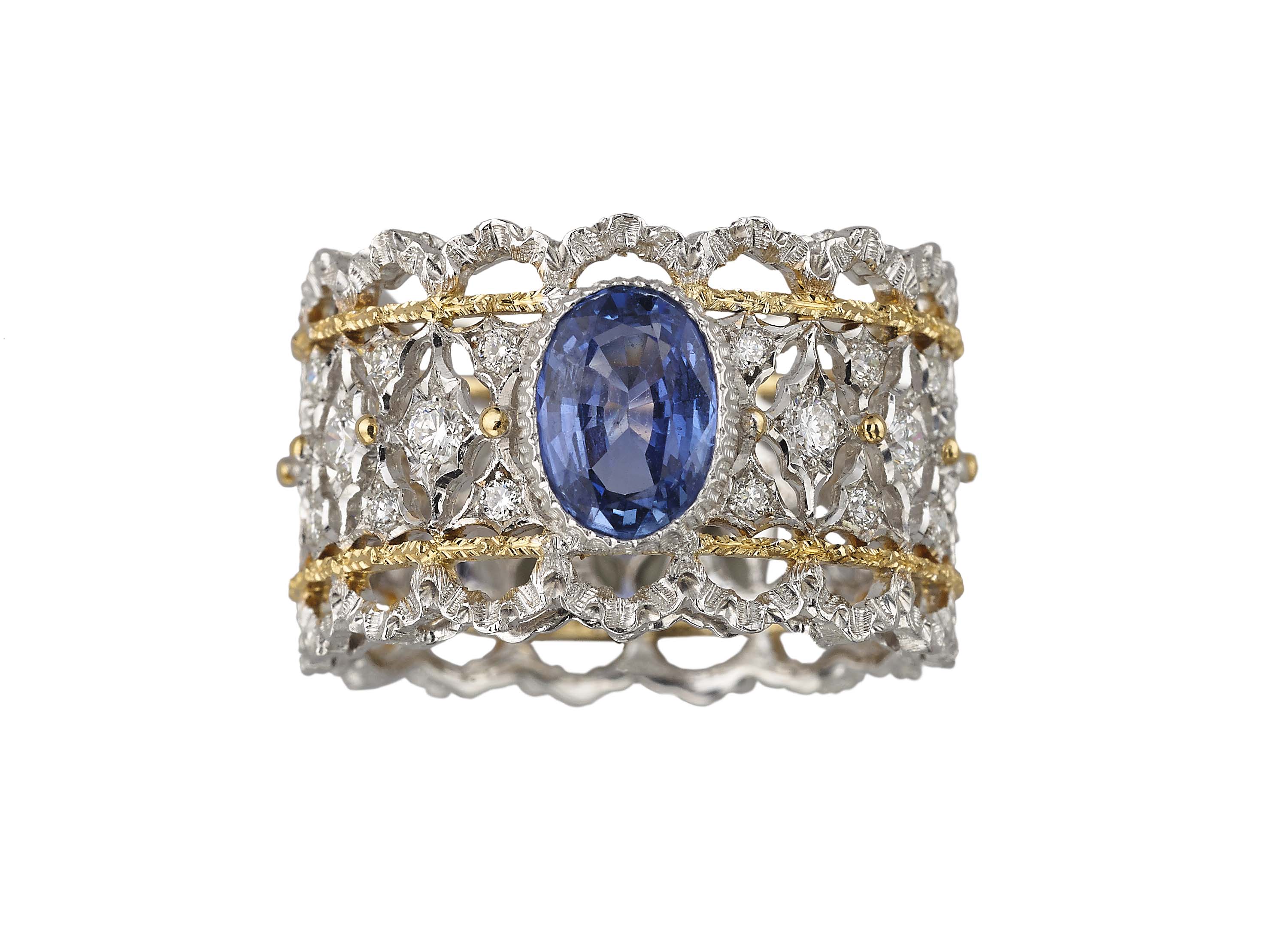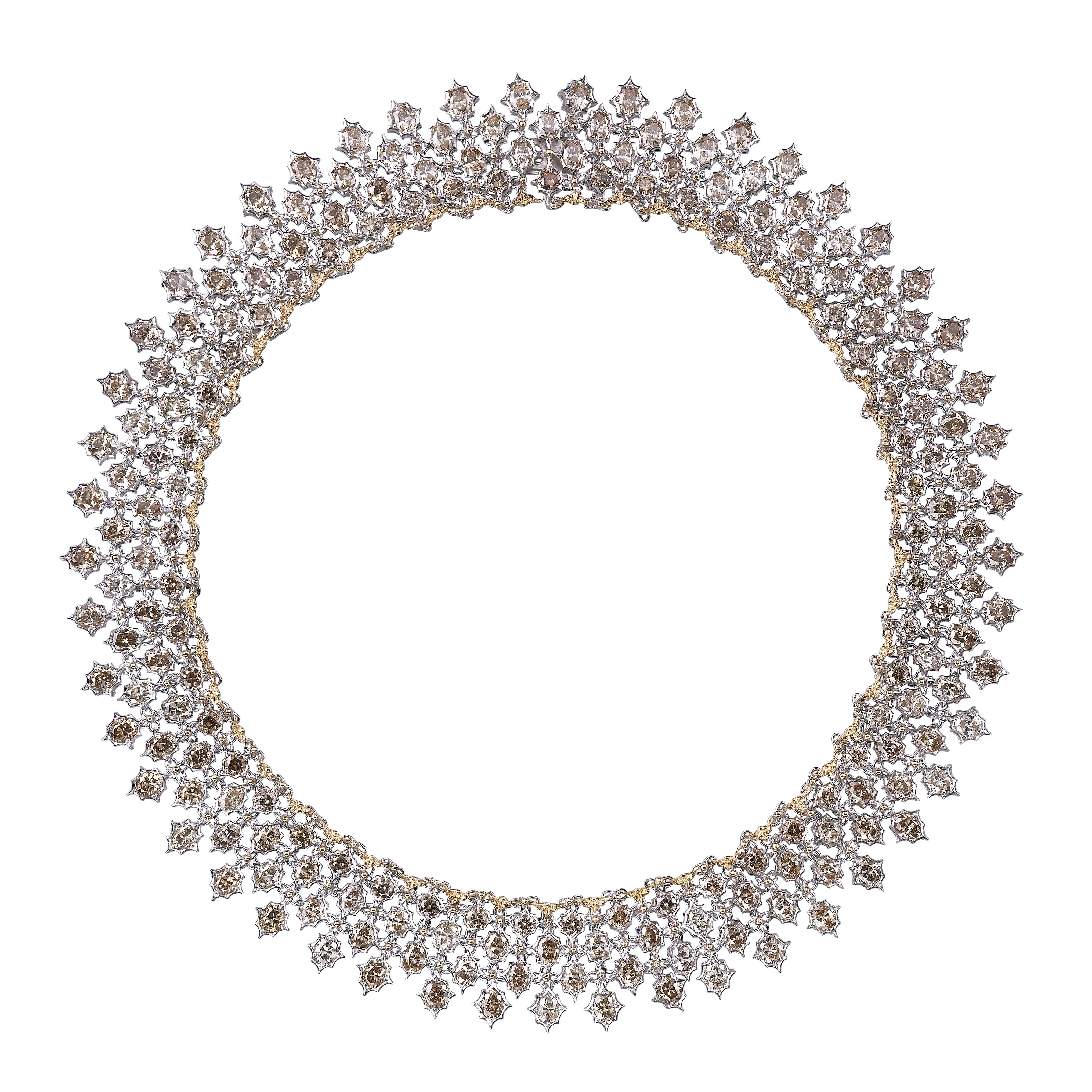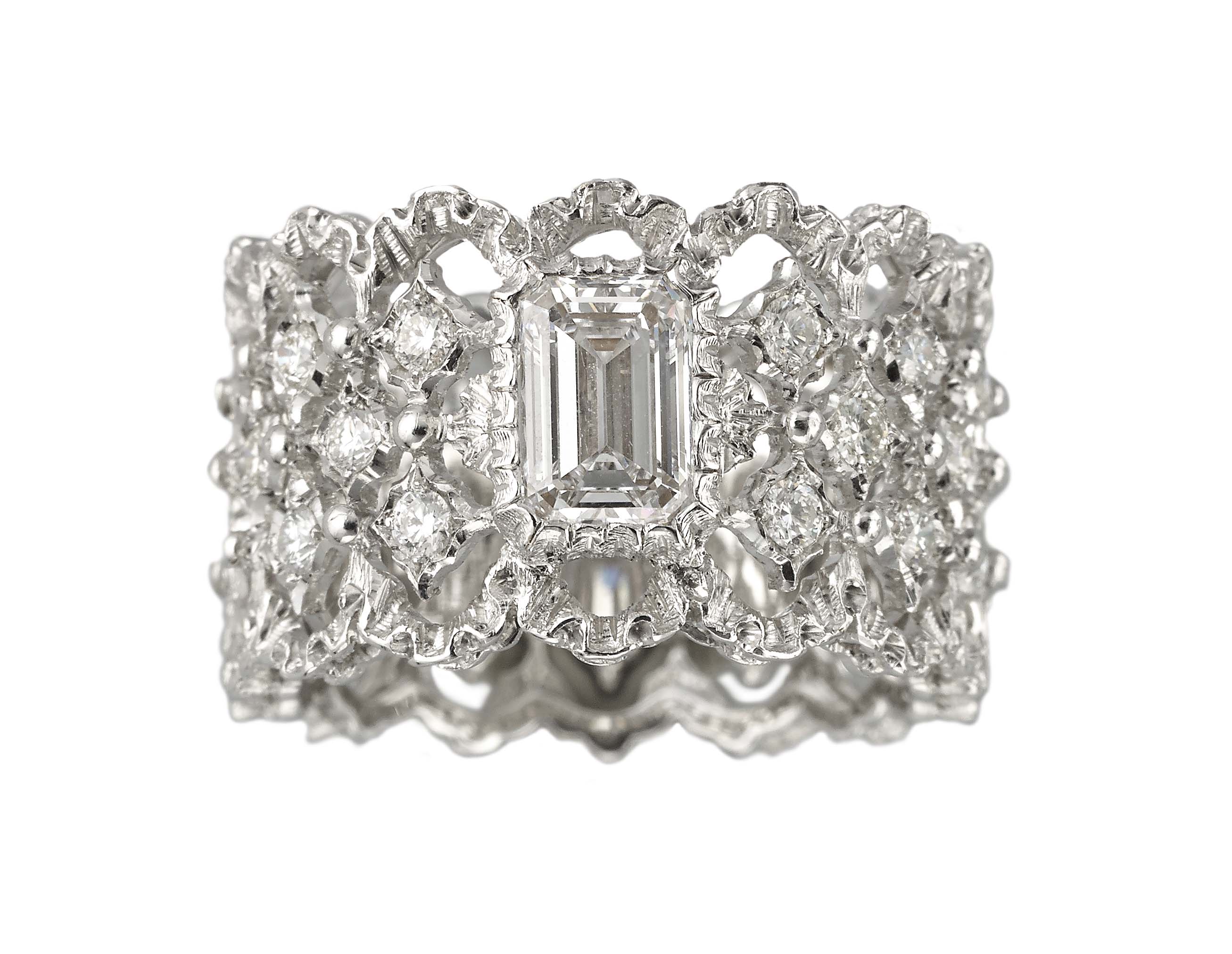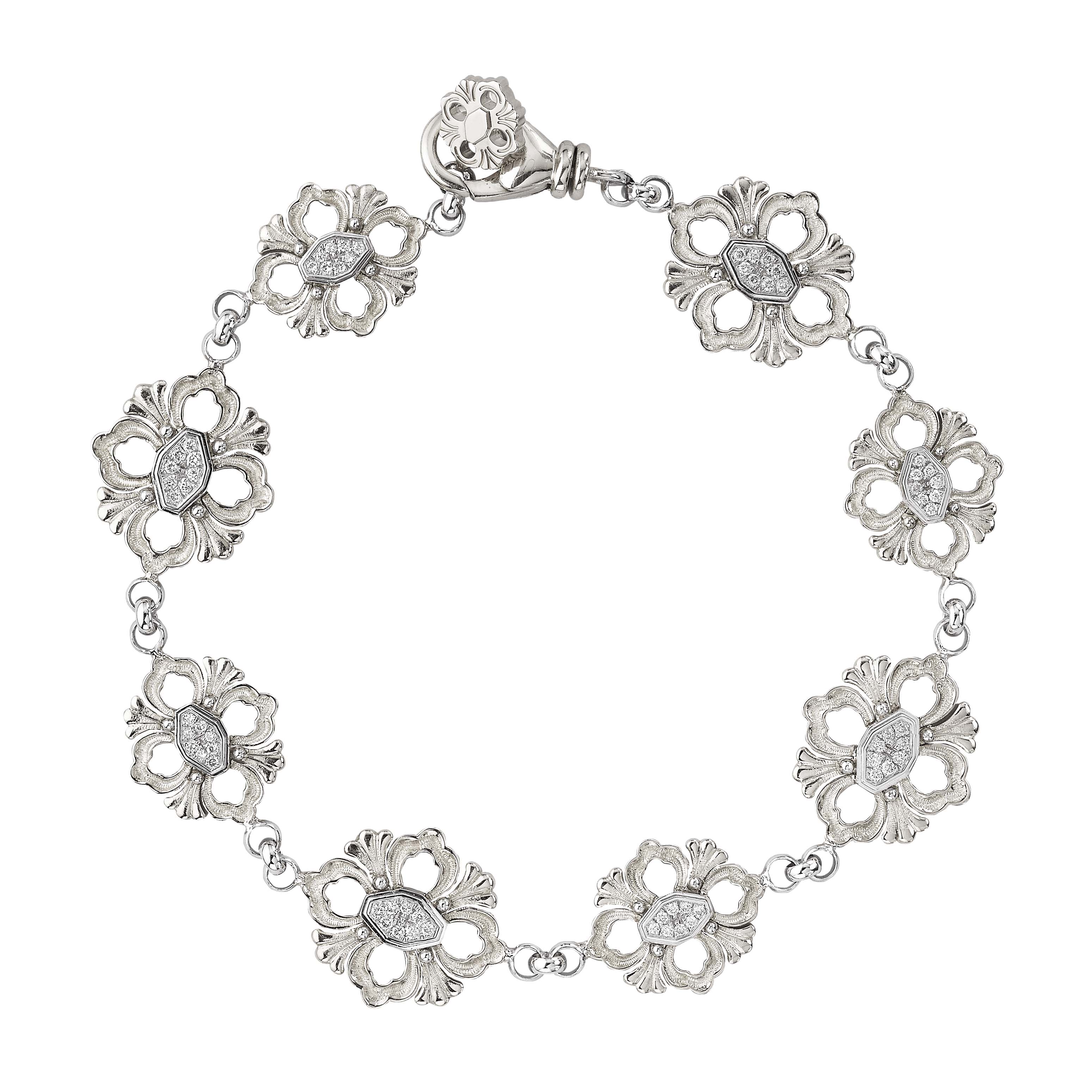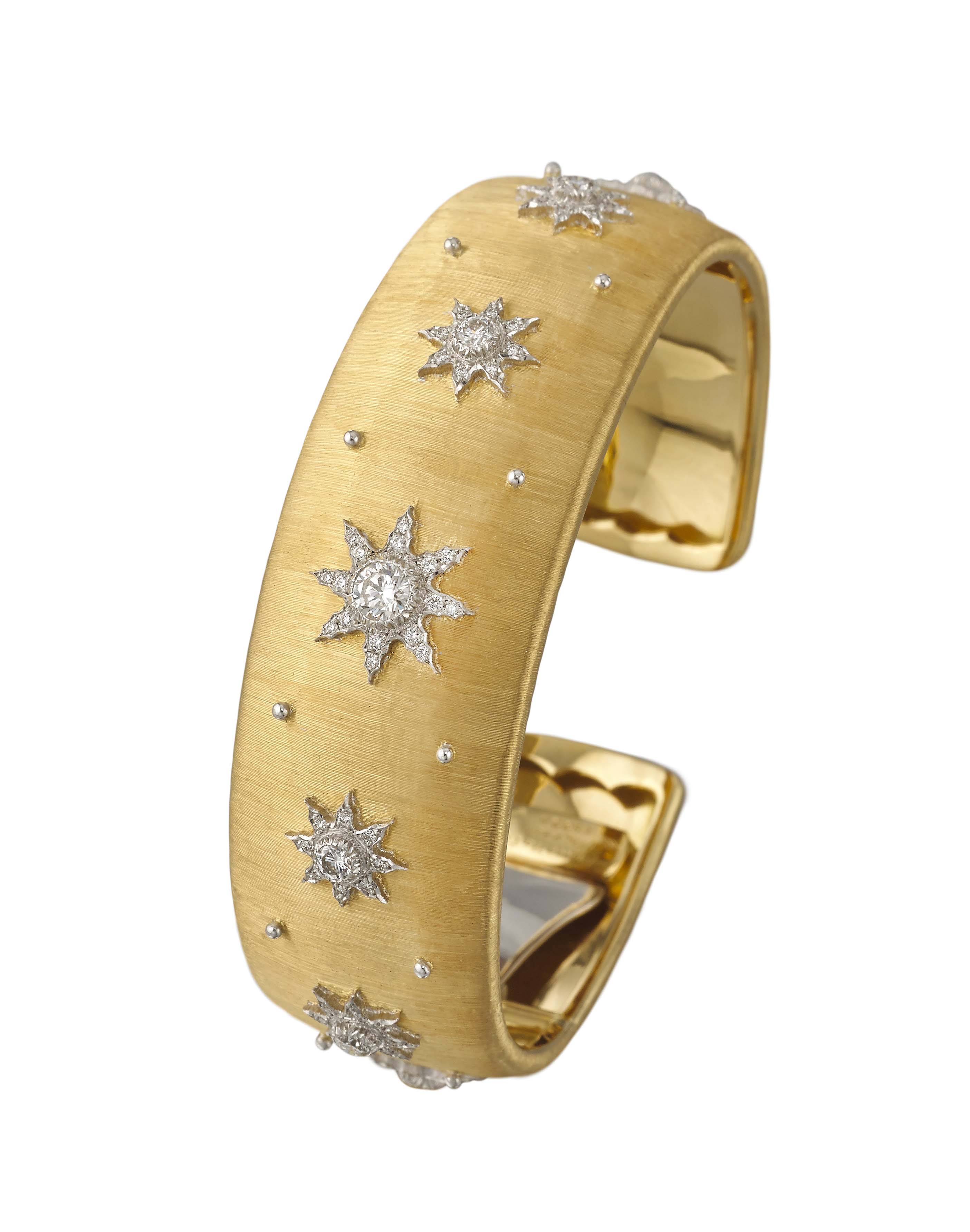 L’élément floral de la collection s’inspire du logo de la maison, qui rappelle l’aspect visuel de la coupole de l’église du San Carlino à Rome. Elle rappelle également la rosace située au-dessus de l’entrée principale du Château de Roccolo à Busca et les décorations qui surplombent les colonnes du Palais des Doges à Venise, puisant ainsi dans des courants artistiques qui sont une grande source d’inspiration pour Buccellati, du style de la Renaissance au style gothique vénitien, en passant par le néo-médiéval.