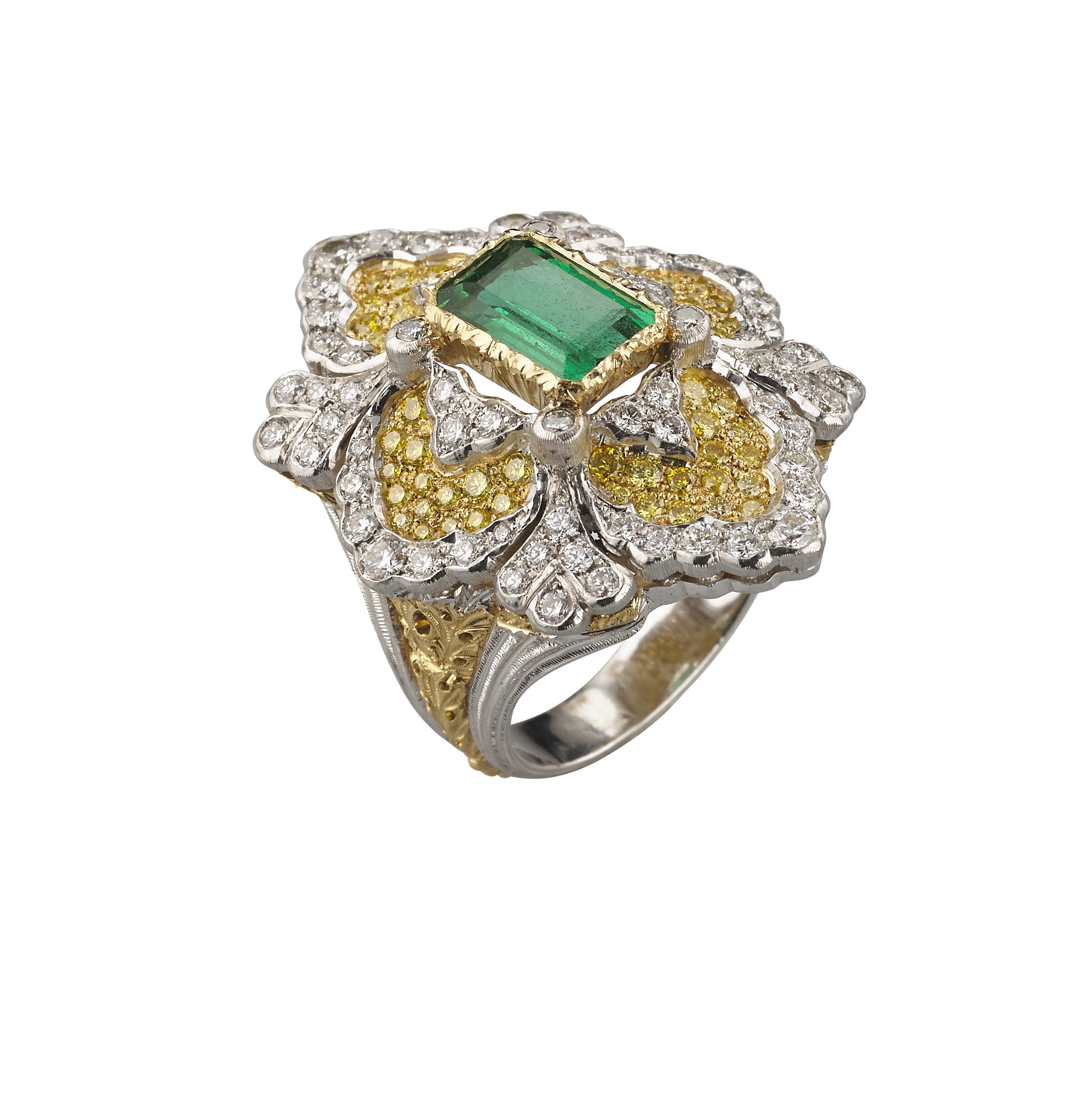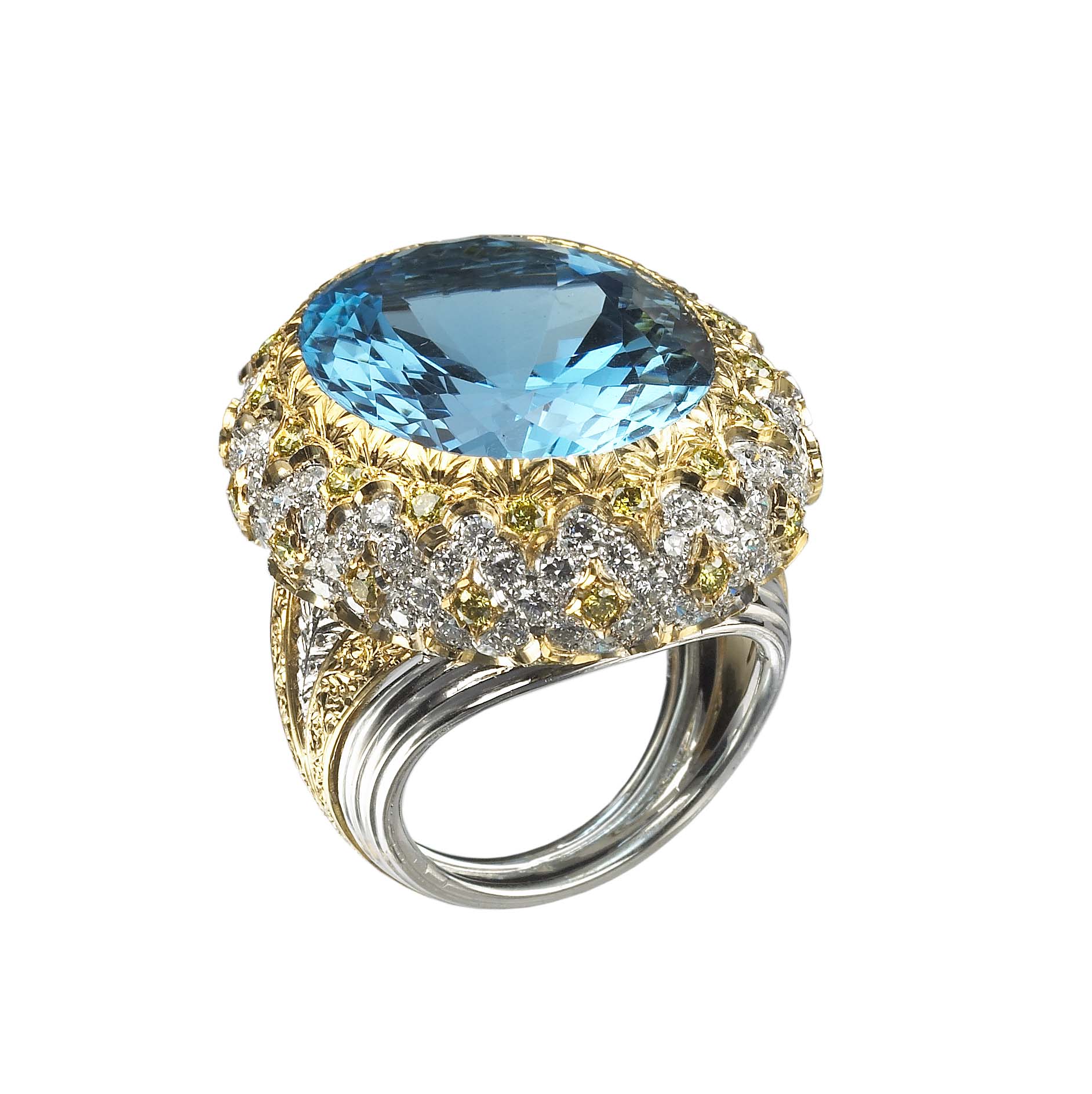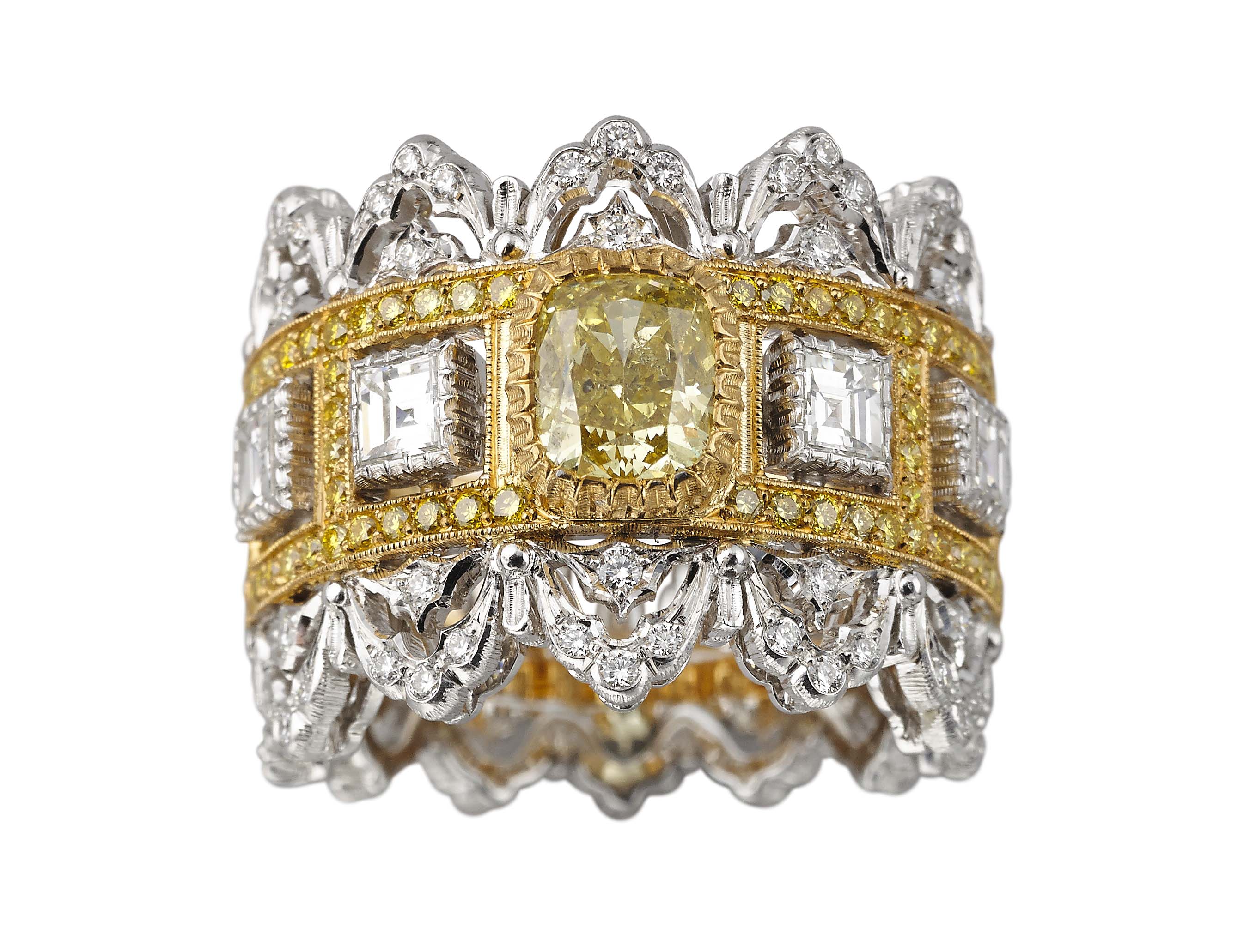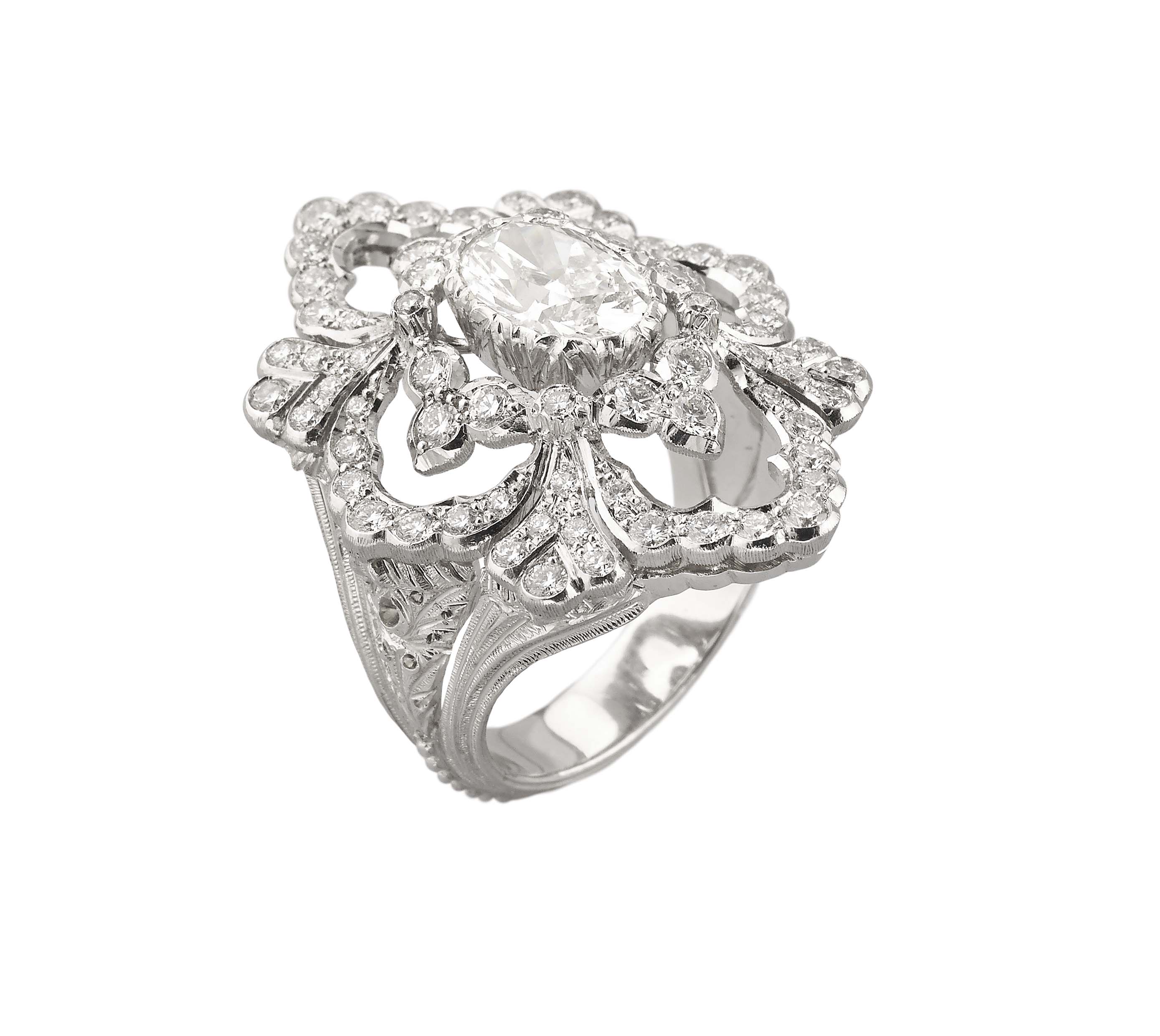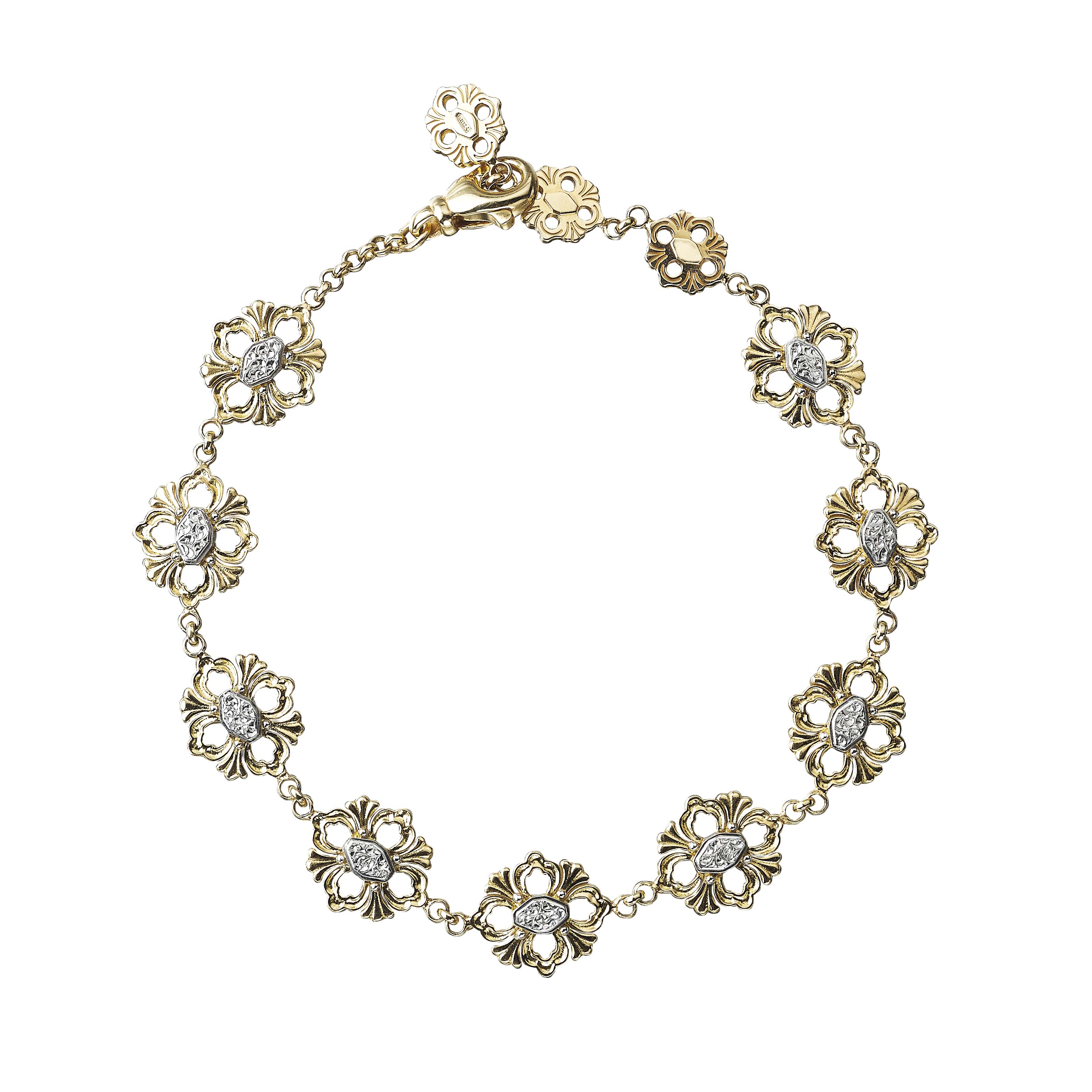L’élément floral de la collection s’inspire du logo de la maison, qui rappelle l’aspect visuel de la coupole de l’église du San Carlino à Rome. Elle rappelle également la rosace située au-dessus de l’entrée principale du Château de Roccolo à Busca et les décorations qui surplombent les colonnes du Palais des Doges à Venise, puisant ainsi dans des courants artistiques qui sont une grande source d’inspiration pour Buccellati, du style de la Renaissance au style gothique vénitien, en passant par le néo-médiéval.