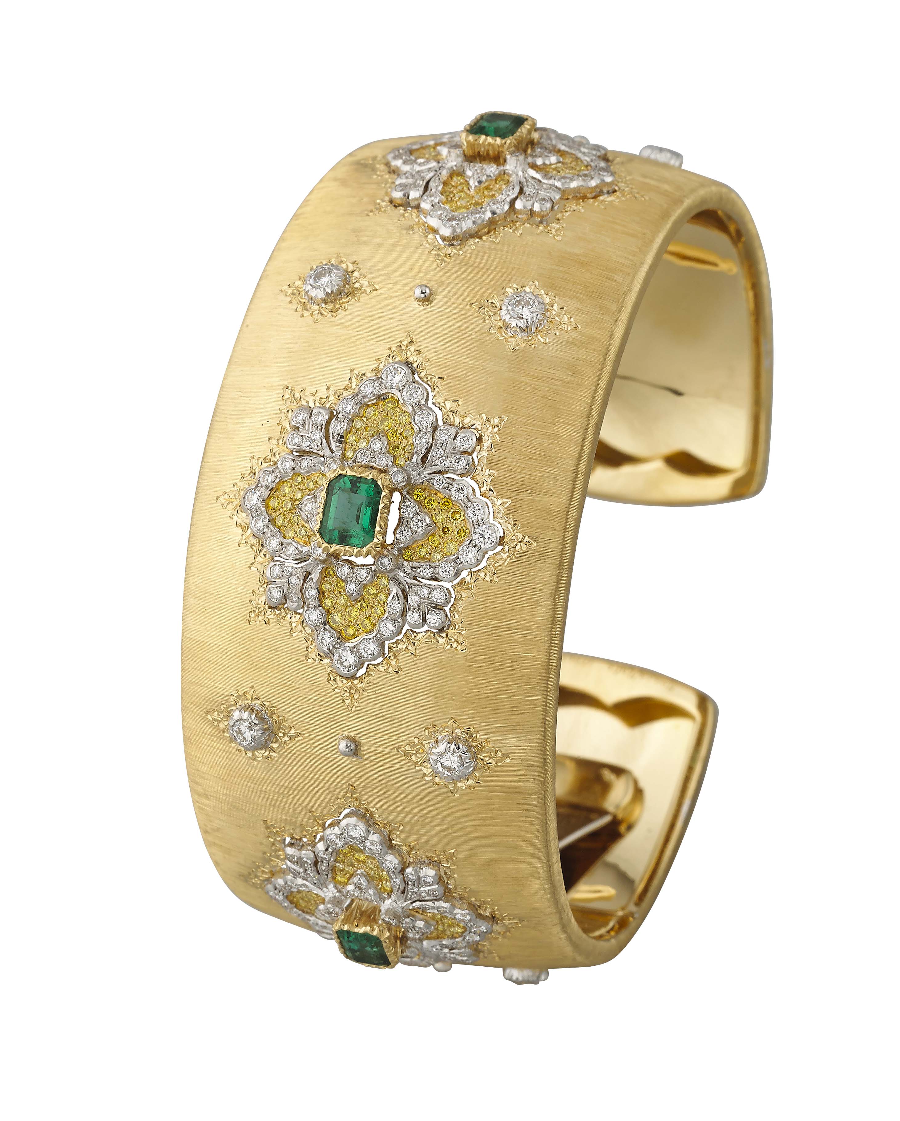 La liaison avec le Théâtre de la Scala à Milan est évidente. La maison Buccellati est née dans cette ville en 1919 et y a ouvert sa toute première boutique, tout en continuant à se développer à l’international pendant presque un siècle. Sa production artisanale se déroule encore aujourd’hui, avec la collaboration de centaines de maîtres artisans entièrement dédiés à la gravure et au sertissage des pierres.