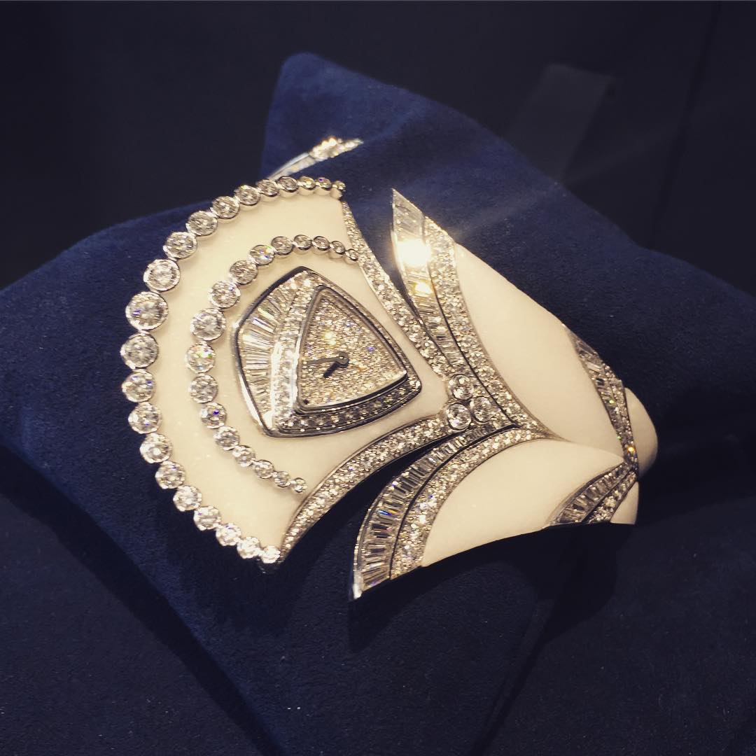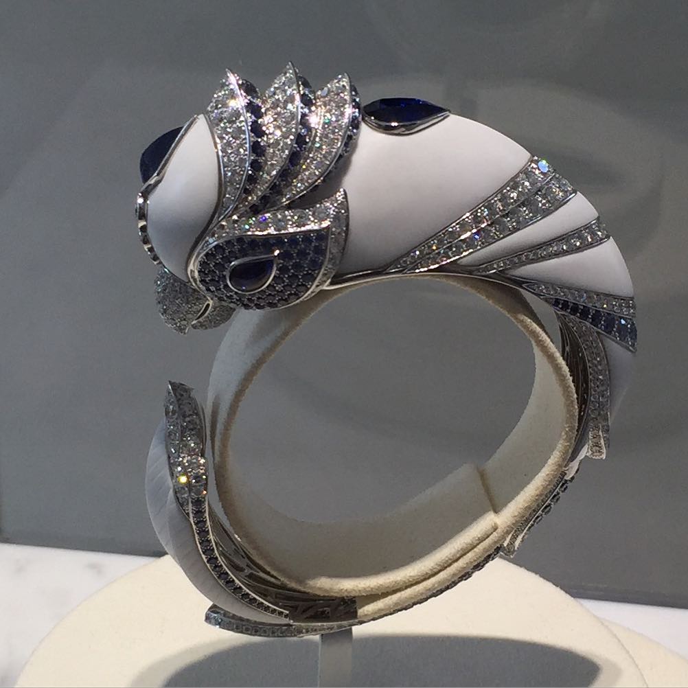 La Maison reprend, outre la forme et les matériaux traditionnellement utilisés, l’or, métal sacré en Inde, le diamant et les perles, auxquels elle ajoute la modernité du cristal de roche qui figure les contours de la citadelle d’Ahhichatragarh.