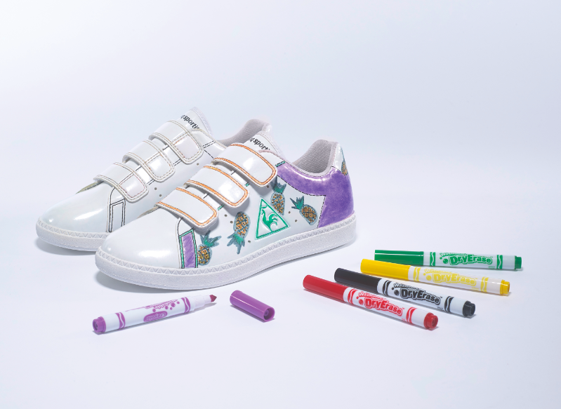 C’est sous le signe du challenge que la marque le coq sportif signe sa rentrée. La marque de sport française s’associe à Crayola pour proposer une chaussure qui se construit avec son propriétaire: une sorte de « do it yourself « où chacun pourra imprimer son inventivité et s’exprimer librement sur des baskets immaculées. Comme les tableaux blancs ( hé oui, les tableaux où les craies s’écrasaient ne sont plus noir), la marque créée avec Crayola « La tennis Court 1 », sur laquelle les petits, peuvent griffonner à leur guise. Plus peur de se faire crier dessus, pour avoir gribouillé sur ses baskets toutes neuves: c’est fait exprès. Du coup c’est moins dangereux…