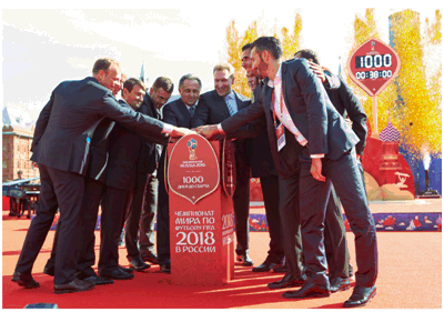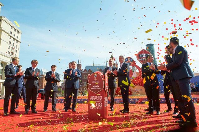 En plein coeur de Moscou, à 1000 jours de la Coupe du Monde de la FIFA Russie 2018, l’horloge officielle du compte-à-rebours est dévoilée