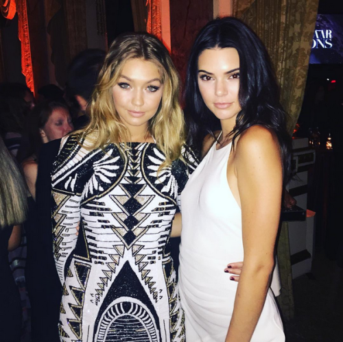 Dans l’univers du mannequinat, on a connu la vague des tops des années 90, puis les modèles avec des noms finissant en A (Anja , Sasha, Natasha, Freja….). De nouvelles figures arrivent à chaque saison, et c’est de nouvelles mannequins « star » qui émergent. Agyness Deyn fin 2000, Freja Beha et son allure garçonne, puis le phénomène Cara Delevigne . La »it -girl » du moment : Kendall Jenner bien sûr. Scrutée, la jeune fille fait souvent la une des magazines au côté de Selena Gomez ou Taylor Swift-presque plus que les campagnes de pubs. Une blonde pulpeuse est souvent à ses côté : sa « BFF » Gigi Hadid ( elles sont en famille, mais je vous épargne les détails de divorces et demi-frères et soeurs un peu compliqués!). Un gang de filles, qui jouent la carte de l’amitié éternelle sous fond de girl power : Spice girls hybrides de notre époque.