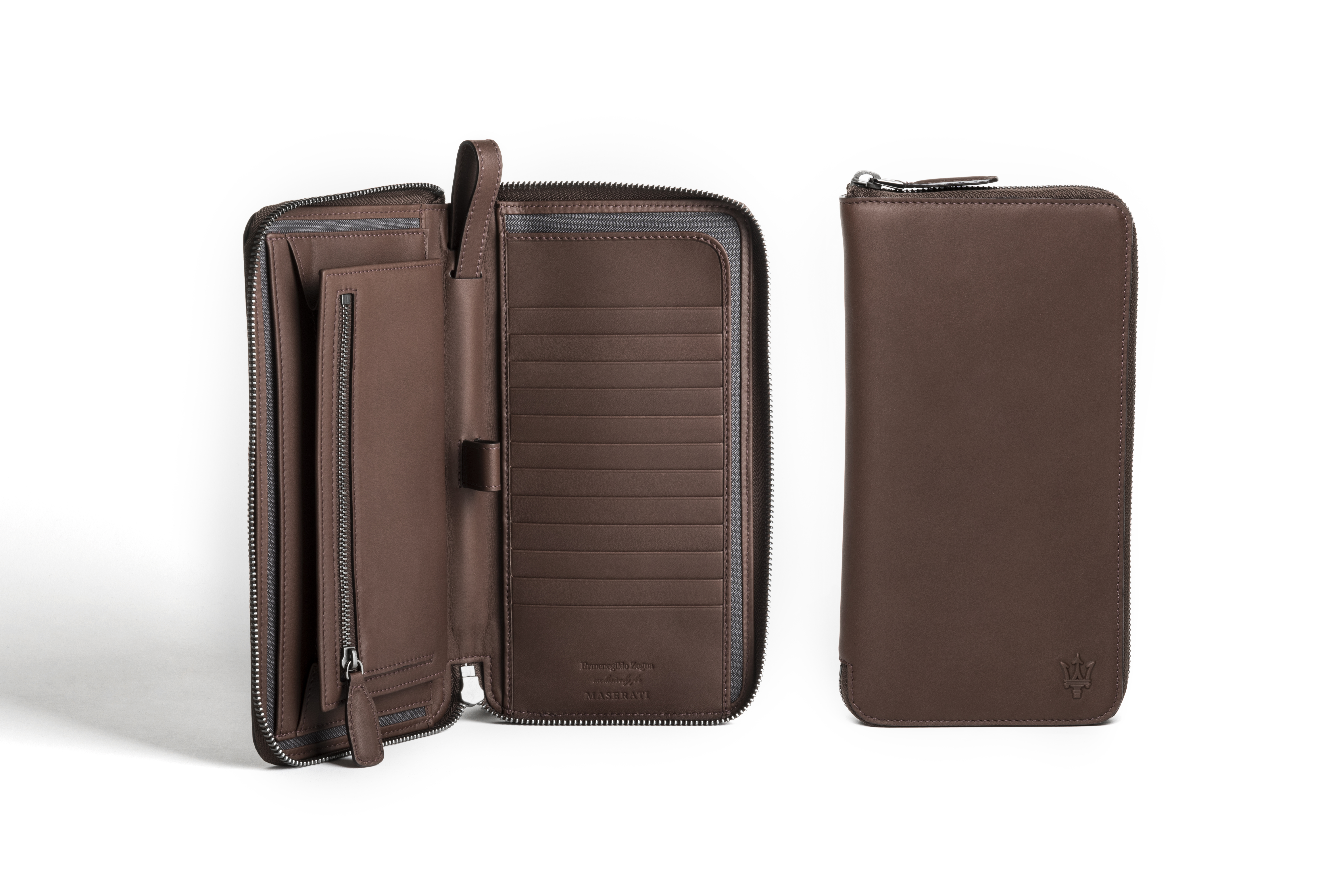 La soie Zegna au motif si caractéristique associée à des cuirs de vachette d’une grande finesse et rehaussée du trident Maserati incarne à la perfection une certaine idée du luxe tout en discrétion chère aux deux marques. Un blouson exclusif de style aviateur à manches raglan en cuir d’agneau nappa plongé haut de gamme et pure soie à motif chevrons fait écho au duo de matières qui compose l’habillage des Maserati signé Ermenegildo Zegna, que l’on retrouve également sur les sneakers premium en cuir de vachette poli à la main et tissu Maserati de la filature Zegna d’un confort et d’un chic inégalés. De l’élégant sac fourre-tout en cuir de vachette souple rehaussé du trident Maserati estampé et doublé du tissu Ermenegildo Zegna fabriqué en exclusivité pour Maserati au portefeuille de voyage en cuir de vachette à bride amovible équipé de poches pour ranger passeport et carte d’embarquement ; du porte-clé rehaussé du logo Maserati à la gamme étendue de vêtements qui comprend un sweat-shirt en coton et soie et son pantalon en tissu sweat coordonné et un polo en jersey : tous les articles de la collection mettent l’accent sur le moindre détail auquel le plus grand soin a été apporté. Des écharpes en pure soie à motif chevrons, des gants de conduite en cuir de chèvre nappa marron et des lunettes de soleil pliables rehaussées de détails en cuir viennent compléter la collection comme autant d’accessoires qui réveillent l’enthousiasme que chacun d’entre nous éprouve devant une voiture de sport de luxe.