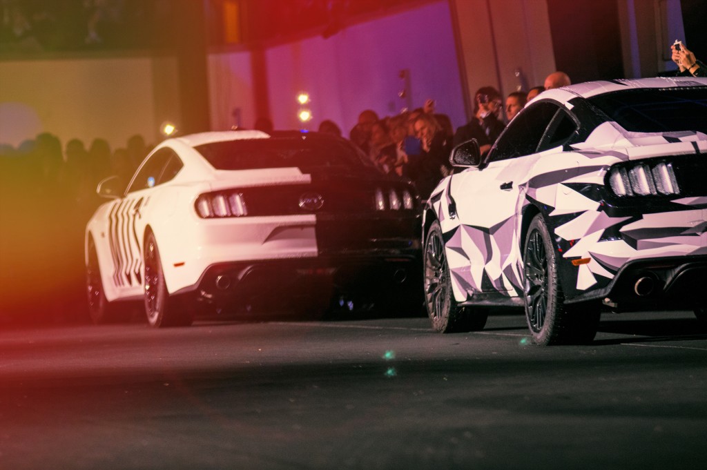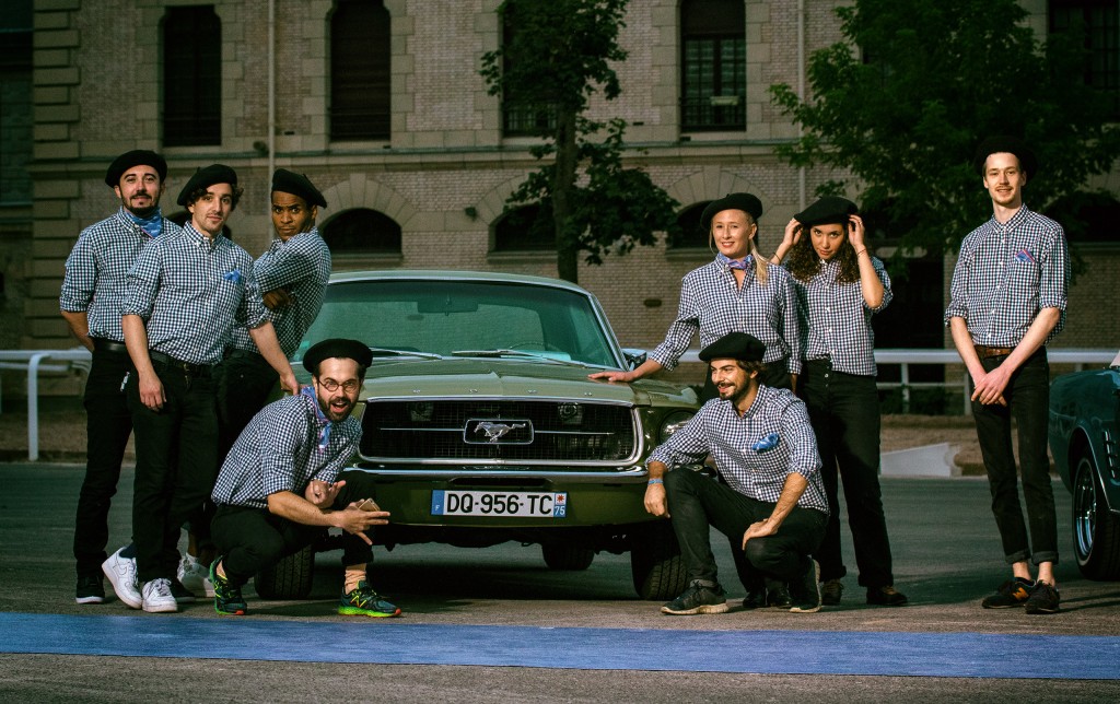 Les six Ford Mustang devenues “art cars” sous la houlette des artistes Mathieu César, Thomas Lélu, Noé Duchaufour Lawrance, Alexandre Vauthier, de L’Encrerie, sans oublier Morgan Grosset, gagnant du jeu concours Design Boom, ont défilé sous les