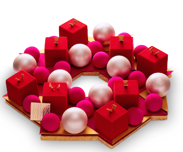 Pour parfaire et clore un menu d’exception, c’est une création acidulée, innovante et surprenante qui s’offre aux fins gourmets. Ils ne pourront que s’extasier devant cette bûche, en forme de couronne, par un Ouh là là.