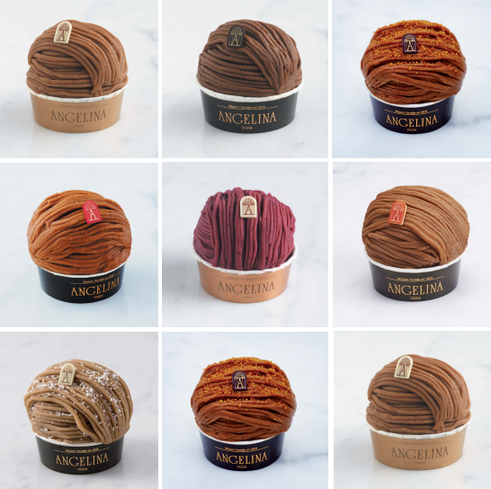 Le mercredi 4 novembre, toutes les vitrines des boutiques Angelina seront garnies des différentes déclinaisons de la pâtisserie légendaire proposées au fil des Collections Saisonnières : Mont-Blanc Classique pour les puristes, Mont-Blanc Chocolat pour les chocovores, Mont-Blanc Praliné pour les vrais gourmands, Mont-Blanc Fraise-Vanille pour une saveur fraîche et fruitée, Mont-Blanc Cassis pour une saveur originale, Mont-Blanc Framboise et ses belles notes d’acidité ou encore le Mont-Blanc Passion-Coco pour un mariage exotique. Mont-Blanc individuel Angelina : 9.30 € sur place, 7 € à emporter (pour toutes les déclinaisons)