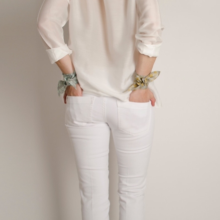 En format mini, Twilly à nouer dans les cheveux, autour du coup mais encore plus original autour du poignet pour un style résolument chic. Motifs originaux imprimés sur soie aux fleurs de Bach anti-stress pour votre bien-être et votre sérénité.